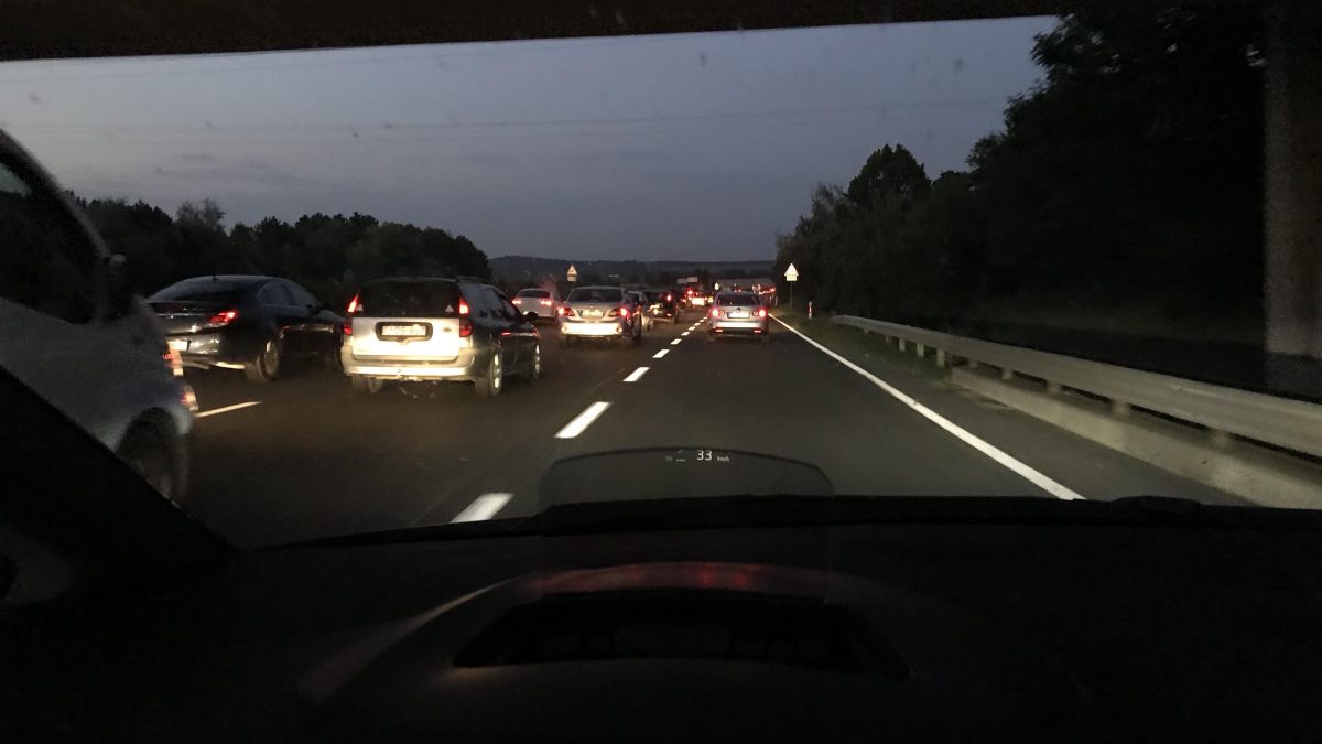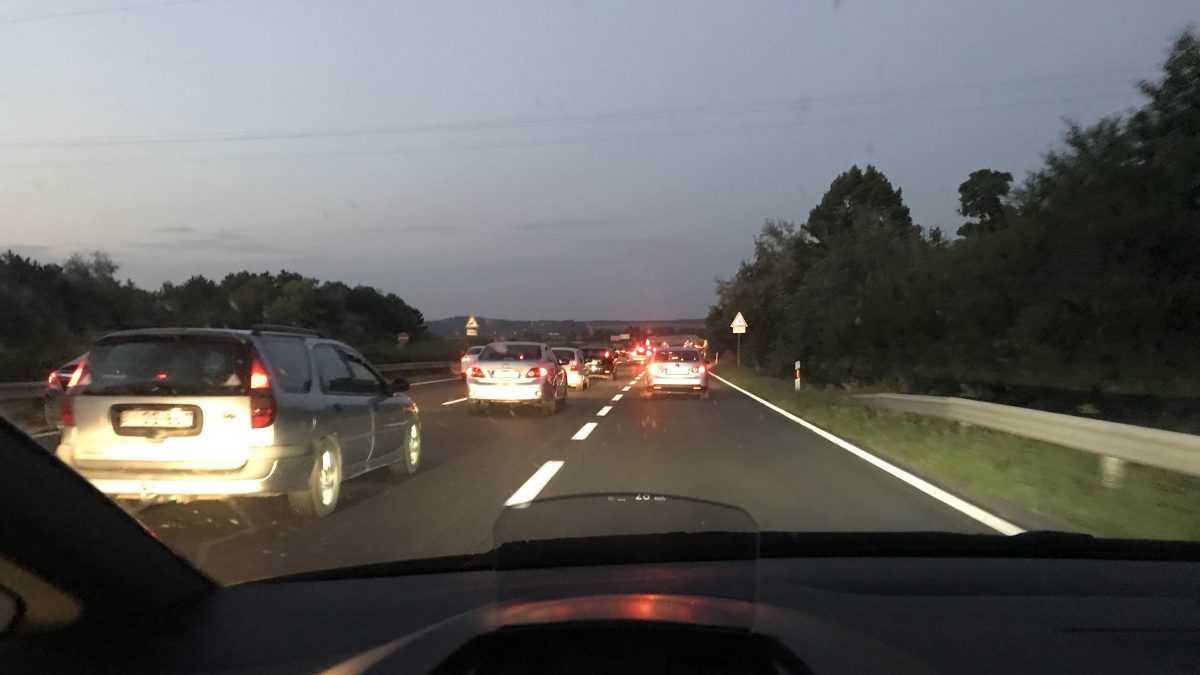 A fotó még az augusztus 20-a előtti, akkor is zsúfolt M7-es autópályát mutatja, ám mostantól az országhatár felé Balatonvilágostól már csak egy, míg Budapest felé Zamárditól két, de szűkített sávon, előzési tilalom mellett lehet autózni a felújítás ideje alatt
