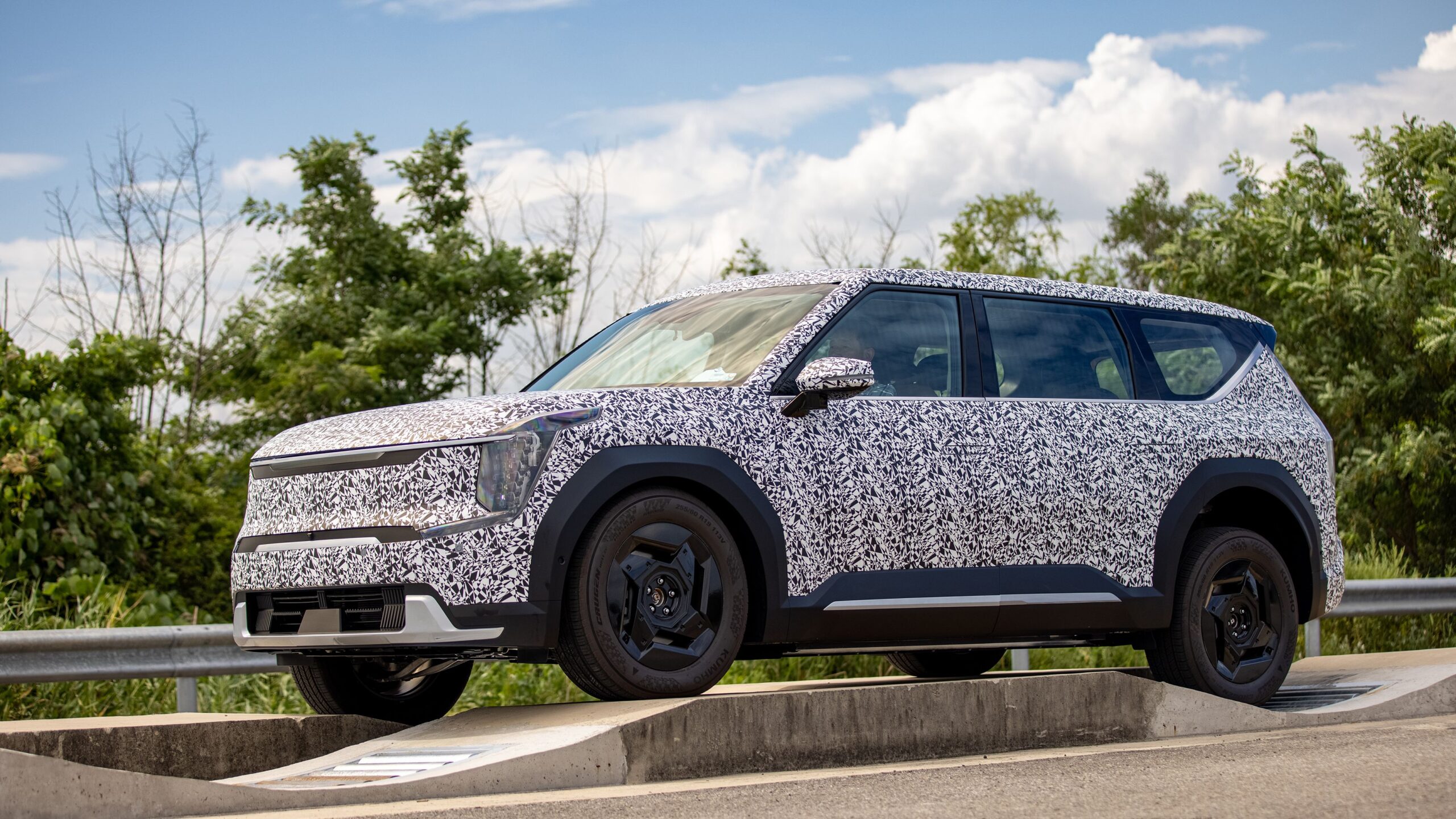 A Kia magasabb árkategóriák felé való elmozdulása a minőségben is meglátszódik, nagy hangsúlyt fektetnek a praktikumra és a menetkomfortra. A padlóba épített akkumulátor miatt a karosszéria szilárdsága és merevsége eleve garantált, a motorhang hiánya miatt azonban a zajszint alacsonyan tartása különös odafigyelést igényel. Éppen ezért tesztelik javában az EV9 prototípusait Dél-Koreában a márka saját kutatás-fejlesztési központjában, bár - mint mindegyik Kia esetében - több példányt próbáltak már a világ többi kontinensén is. SUV lévén illő, hogy bizonyos szintű terepképességekkel rendelkezzen, ami az összkerékhajtásnak köszönhetően biztosított is, ezt meredek lejtésű szakaszokon és tereppályákon tesztelik. Feszegetik a gázlómélységet is vízzel töltött medencékben, de a nagy sebességű, illetve a csúszós viszonyok közötti vezetést is addig próbálgatják, ameddig a kívánt biztonsági szintet el nem érik. A hazai utak miatt jó hír, hogy macskaköves utakon is tesztelik az EV9-et. A sorozatgyártású modell bemutatója 2023 első negyedévében várható, az álcázott tesztpéldányok fotói alapján pedig a végső forma erősen hasonlít majd a tavaly bemutatott koncepcióváltozatra. Érdekesség, hogy az EV6-hoz képest radikálisan új formanyelvezet bontakozik ki, a Kia elmondása szerint ez a márka további modelljeinek arculatában is visszaköszön. Annyira egyedinek talán nem ígérkezik, mint az