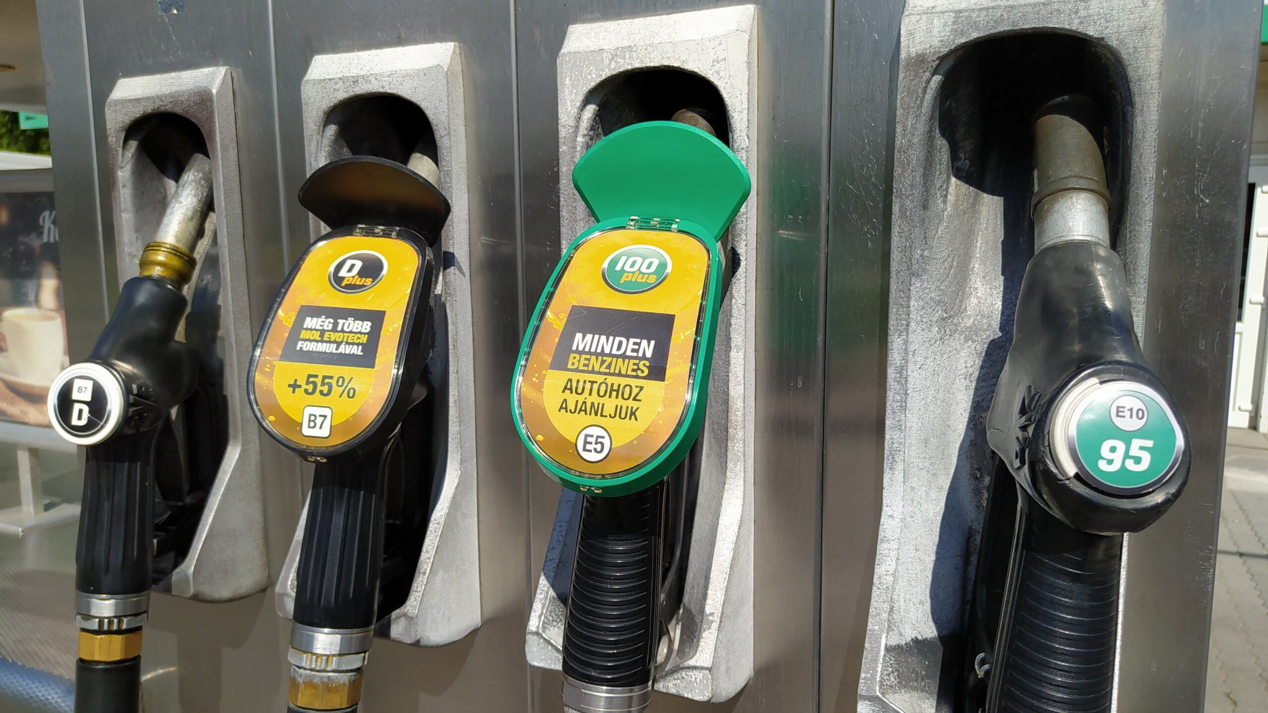 Töltőpisztolyok egy benzinkúton: utoljára 2018-ban, az egységes európai jelzések (E5, E10, B7, B10, stb.) bolygatták meg így az internetet: mint kiderült, végül ennek is lett haszna 2020-ban, az E10-es benzin bevezetésekor