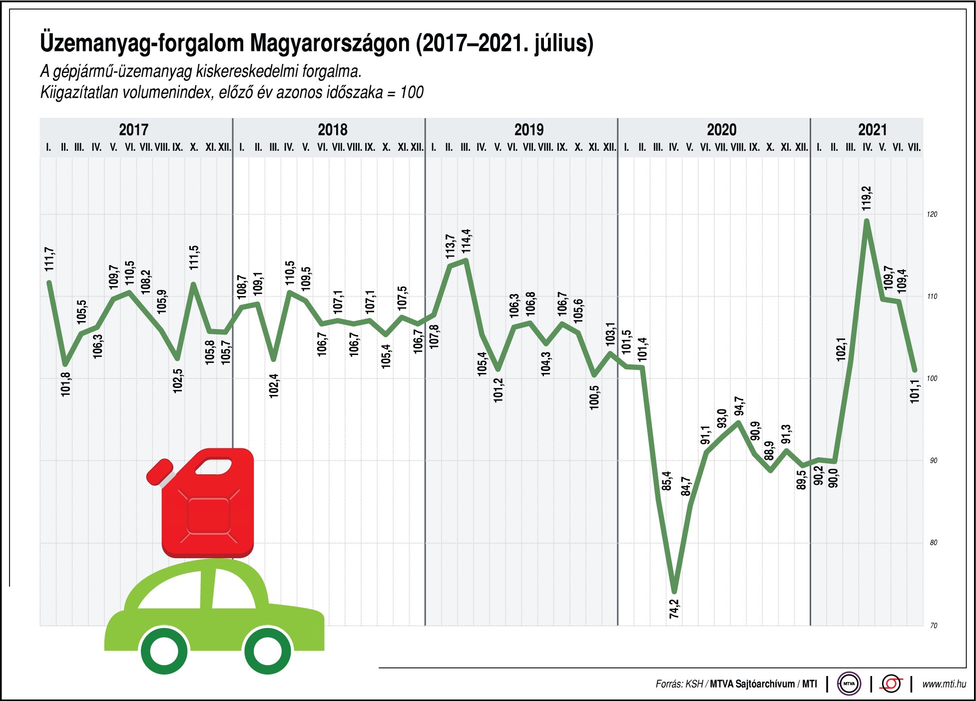 - Benzines jármű esetén 6,33 l/100 km