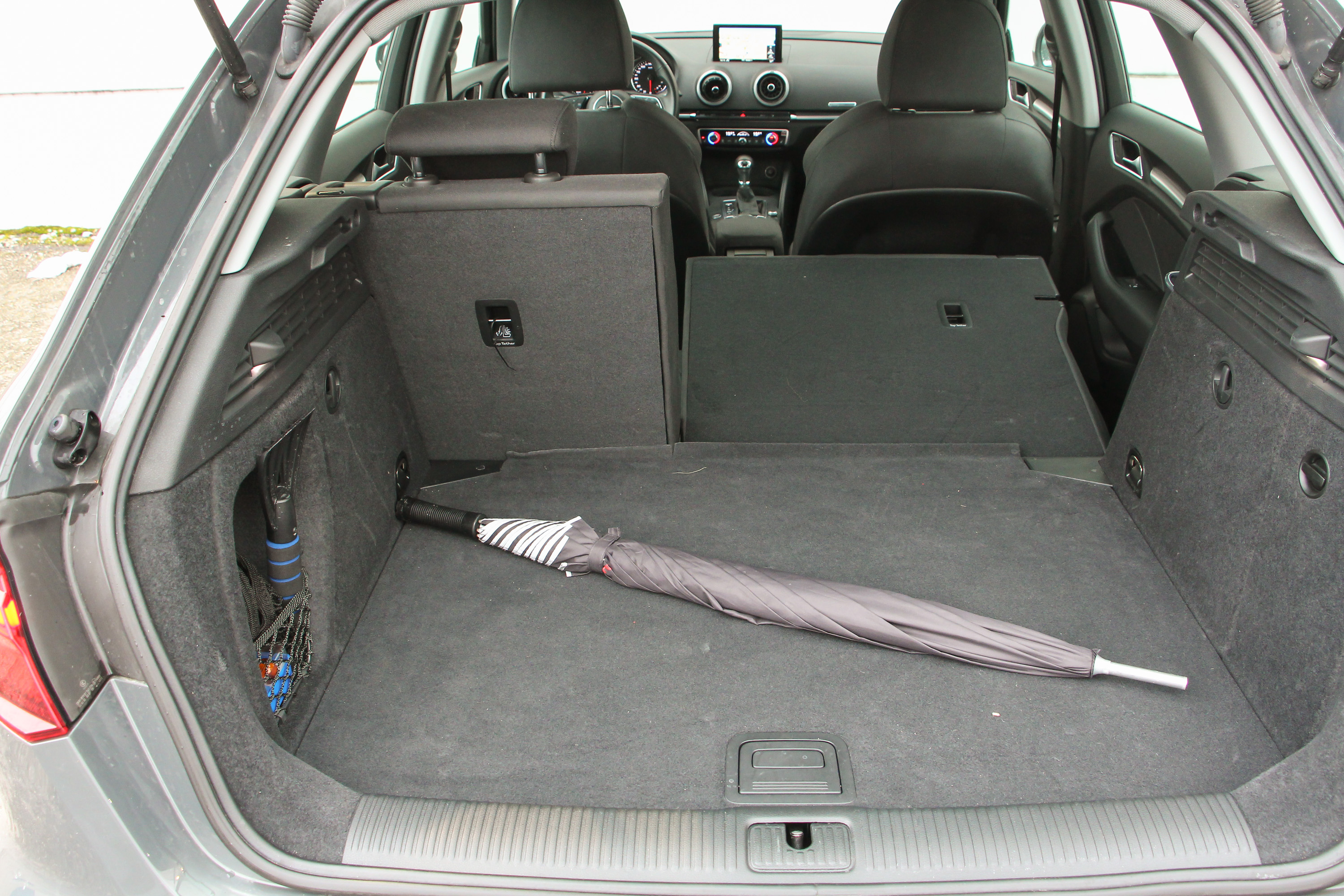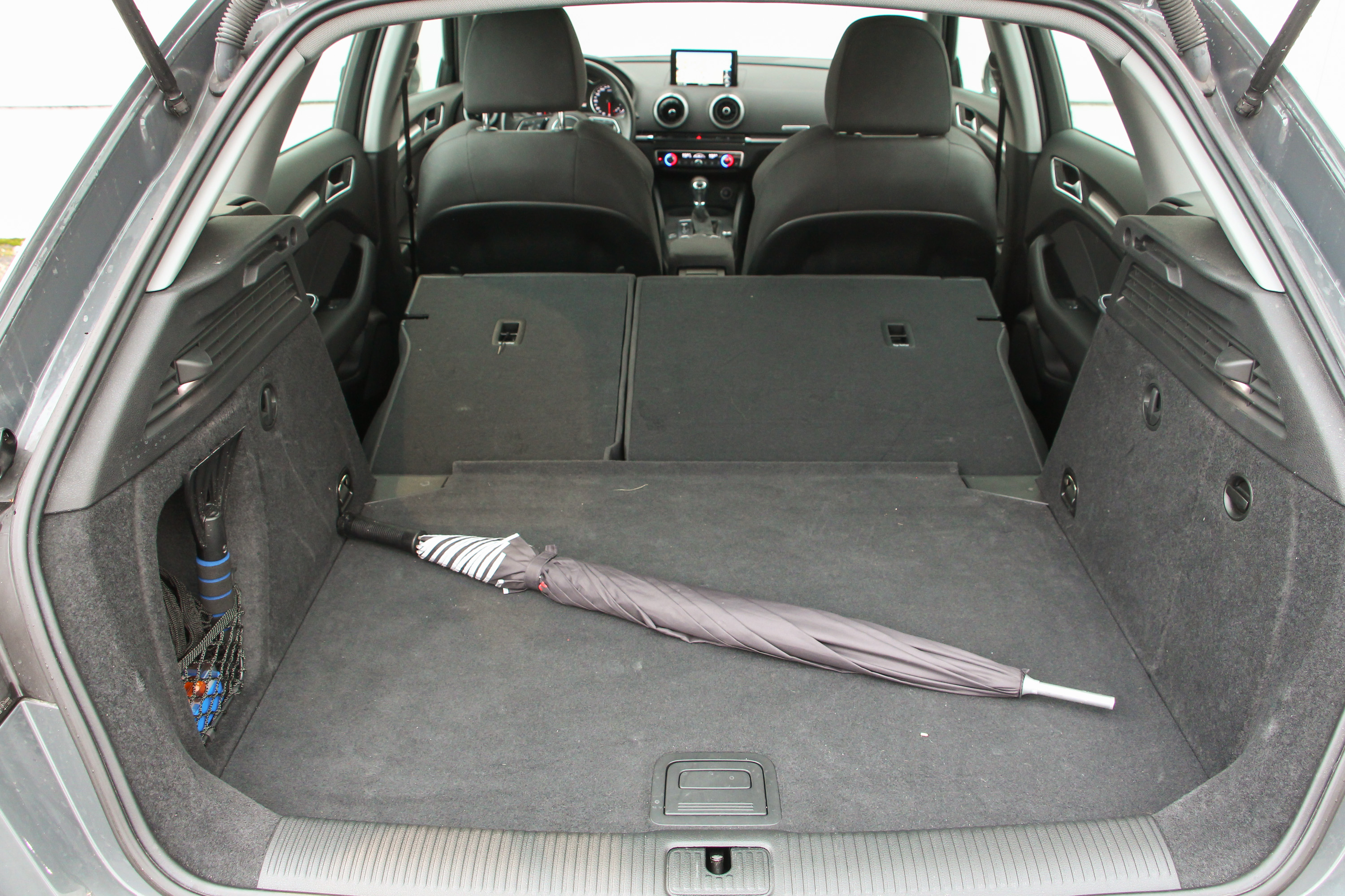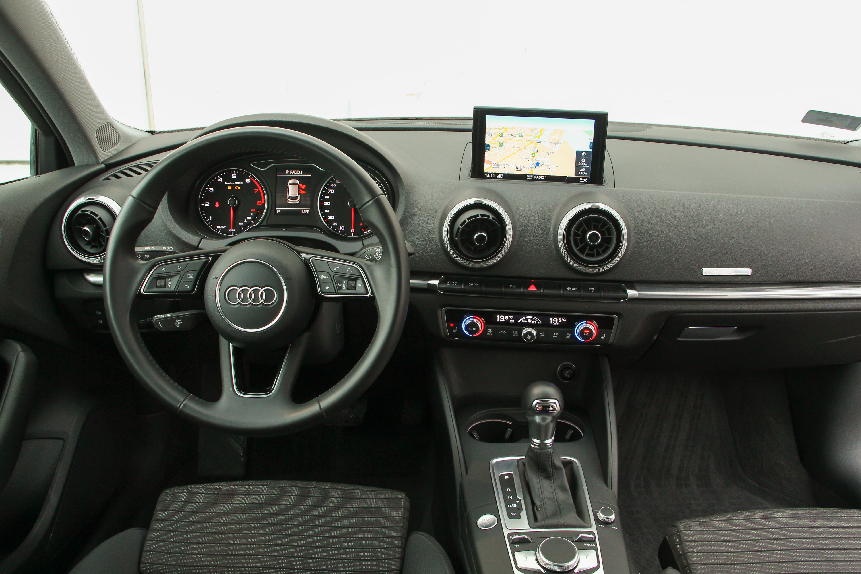 A Sport felszereltség változatható laphosszúságú ülései lapjukkal és támlájukkal is kifejezetten jó tartásúak, kényelmesek. Jó fogású a kormánykerék is, ami kellően közvetlen, ugyanez elmondható a futóműről is, a közvetlenség persze némi keménységgel is jár, a kanyarstabilitás viszont átlag feletti így. Az utastér kidolgozása, anyaghasználata korrekt, helykínálata a kompakt kategóriában szintén abszolút jó. Komoly autó hangulatát adja, hogy a motort a váltó melletti gombbal indíthatjuk, ez persze megszokást igénylő. A gyújtásra automatikusan előbújó, de gombnyomásra eltüntethető középkonzoli kijelző nekem kissé zsákutca, főleg úgy, hogy a feláras gyári parkolóradar (általában hasznos) automatikus élesedésével a vizuális megjelenítéshez előbújik. Utóbbi nyilván hasznos, de még jobban szeretném egy fix kijelzőn, ami mozgásával nem vonja el a figyelmet. Finomság (és ebben a kategóriában abszolút nem magától értetődő), hogy hátul is van légbeömlő, 12 V-os csatlakozó, de a középső lábhely a jelen esetben ki nem használt, de az opcionális összkerékhajtás miatt valós kardánalagút miatt erősen korlátozott. A szélső helyeken viszont korrekt az A3 hátul is.