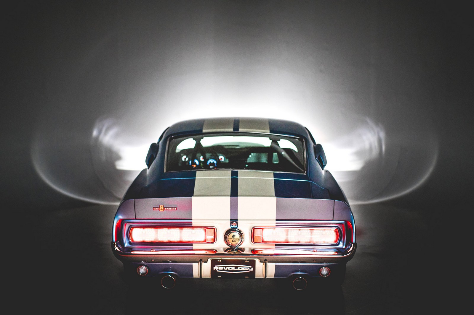 Nem holmi tuning, az acél karosszériát újra gyártják, nem kell donorautó hozzá, néhány modern kiegészítőt is kap, a motorháztető például üvegszálas műanyagból készül. Emellett a friss technikai divatnak hódolva LED-esek az első és hátsó fényszórók is, és van 7 colos Android Auto és Apple Carplay és bluetooth szolgáltatásokat nyújtó multimédiás fejegység is. A géptető alatt egy 5,0 literes kompresszoros V8-as motor dolgozik, 600 lóerőt küld hatfokozatú kézi, vagy automata váltón és egy részlegesen önzáró differenciálművön keresztül a hátsó kerekekhez. A külső és a belső viszont szinte ugyanolyan, mint a '60-as évek végén, még a vékony fa kormány is hasonló. A Revology egy műremeket hozott össze, ami a modern lámpákon kívül megszólalásig hasonlít az eredeti GT500-asra, csak épp vadonatúj minden eleme.