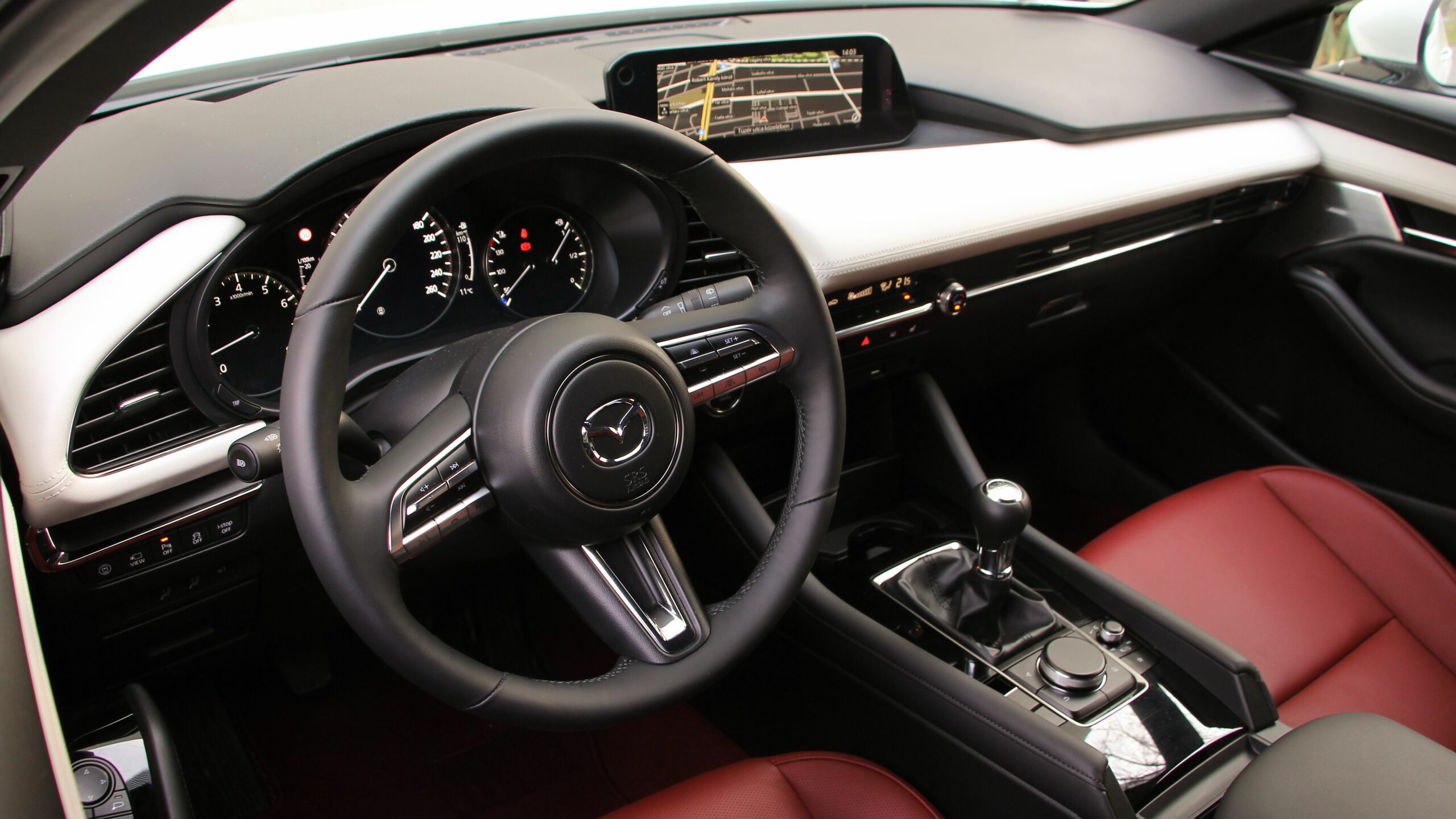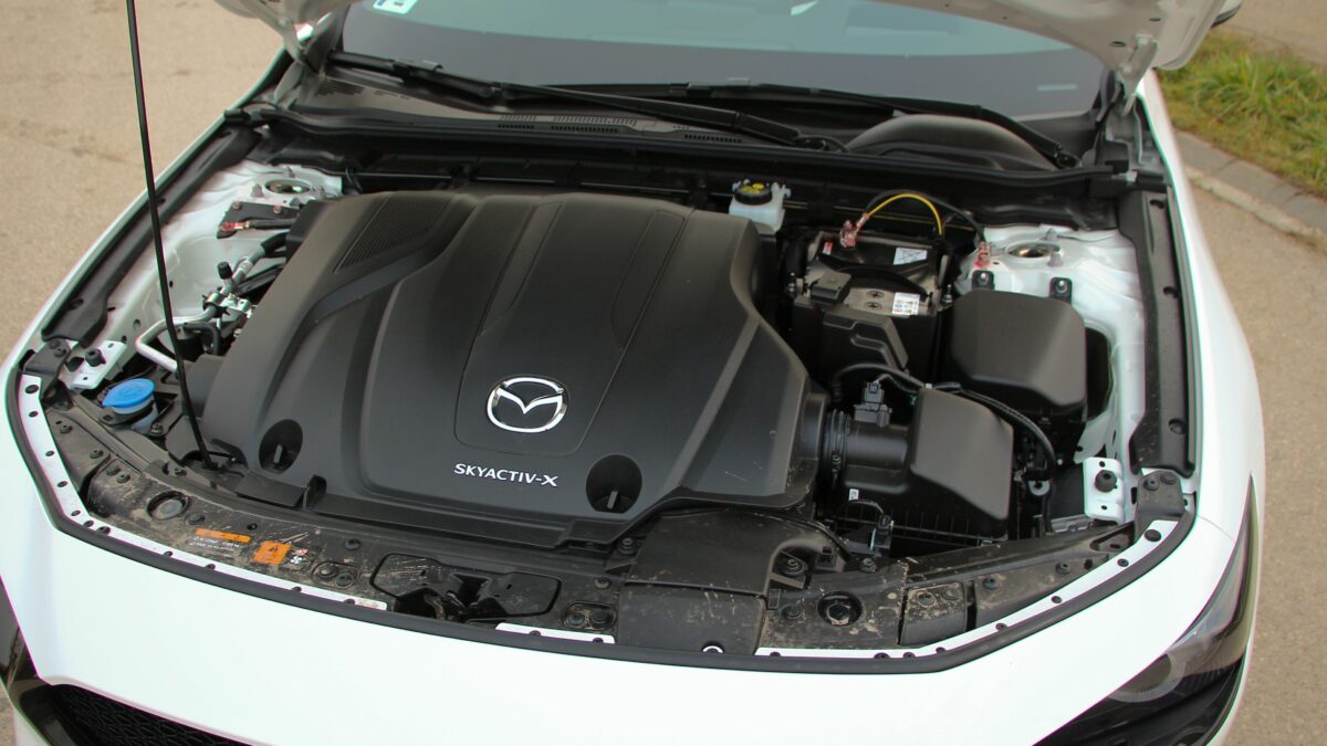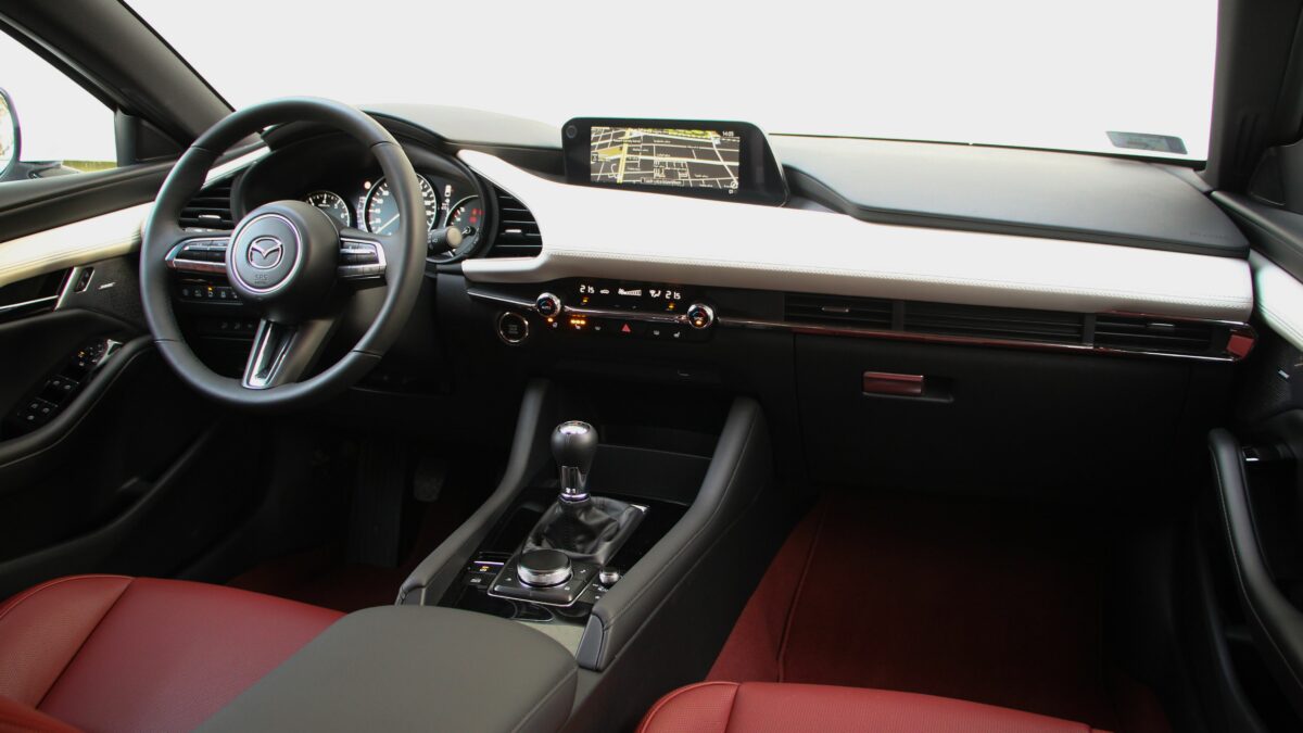 CX-30-ban mért tavalyi érték. Azért fontos körüljárni a fogyasztást, mert az autó orrában az a bizonyos Skyactiv-X motor dolgozik, amelybe benzint kell tankolni, de dízelmotorosan kevés fogyasztást ígér. A szikravezérelt, kompressziógyújtású, kétliteres szívómotor 180 lóerőt tud, 222 Nm forgatónyomaték társaságában, amit hatfokozatú manuális sebességváltó továbbít az első kerekekhez. Persze rendelhető automatával is, illetve összkerékhajtást is kérhet, aki igényli, de a tesztautó konfigurációja is kellemes egészet alkotott. Ezzel a motorral nem annyira sportos a Mazda3, mint amennyire azt a külső dizájn sugallja. Üres tömege kicsivel 1,4 tonna feletti, úgy gondolhatnánk tehát, hogy a 180 lóerő azért izgalmasan mozgatja majd. De sokkal inkább kényelmesen falja a kilométereket.