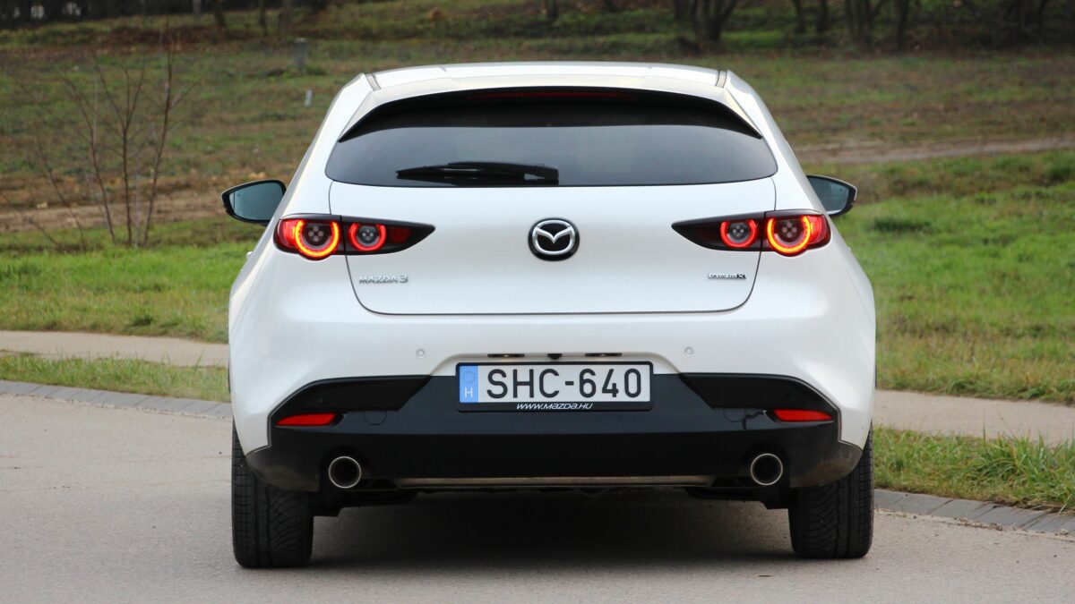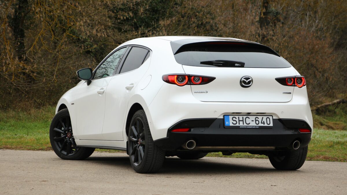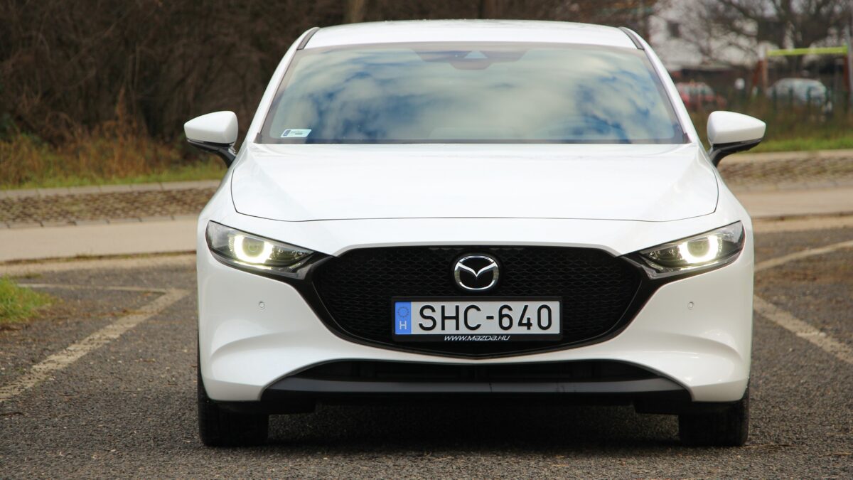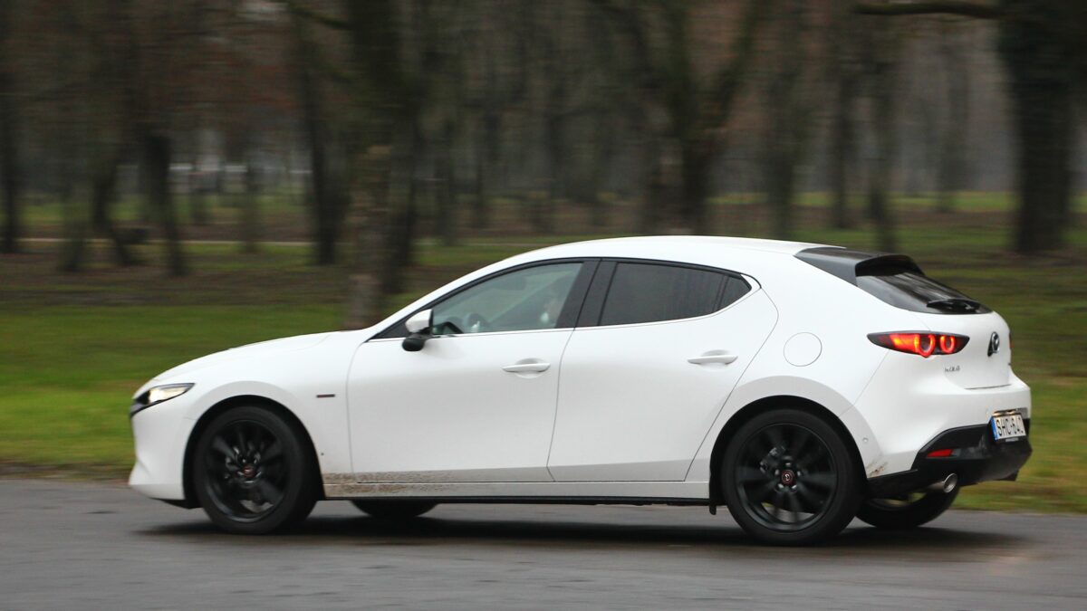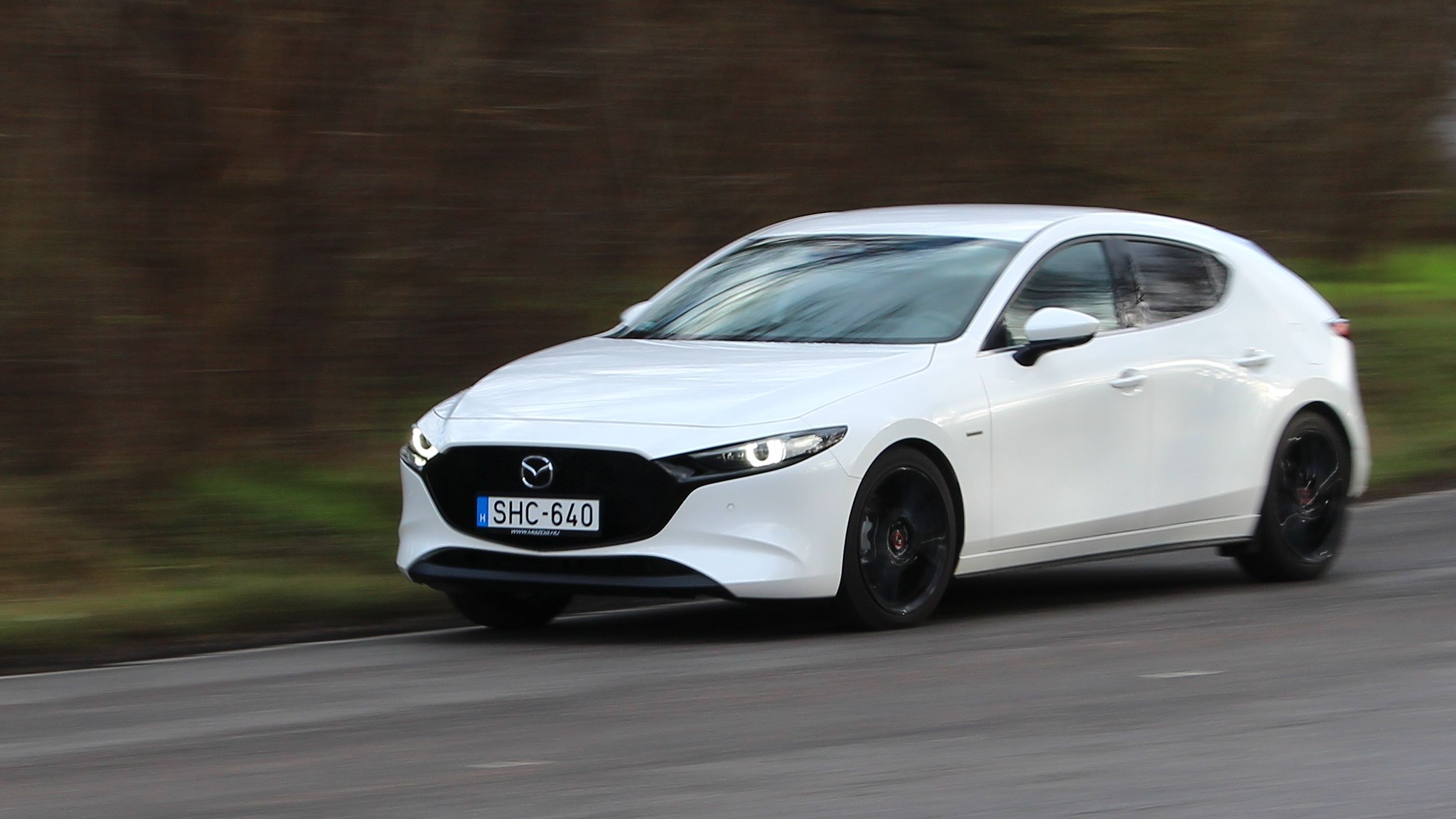 Eleinte kicsit nyomatékszegénynek tűnik, aztán erőre kap, de nincs kimondottan olyan pont, amikor azt mondanám, hogy na most jött meg igazán az erő. Ugyanazt érzem háromezres fordulatnál, mint 4000-nél, ha a gázpedálba taposok. Szép egyenletesen gyorsul, nem passzíroz az ülésbe, de nem sereghajtó a lámpánál elindulva. Sőt, még ötödik fokozatban is szépen meglódul, ha kell, de többnyire a hatodikban pihen majd a váltó, hiszen nem ritkán már 50 km/h tempónál is kéri a hatodikat. Kéri és tűri, alacsonyan tartva a fordulatot, spórolva az üzemanyaggal. Ebben a lágy hibrid rendszer is segít, amely már ebben a hajtásláncban is szolgál. Szóval egy kényelmes utazóautó a Mazda3, hiába sportosan alacsony az üléspozíció is. A futóművet ugyan inkább a feszesebb irányba hangolták, de ügyeltek rá, hogy ne váljon túl rázóssá, bár a 18 colos felnikkel azért nem szereti a hepehupás aszfaltot. A kormány kimondottan közvetlen, viszont a tempós kanyarokban jól érezhetően, hamar alulkormányozottá válik, ami újfent a higgadt vezetési stílusnak kedvez.