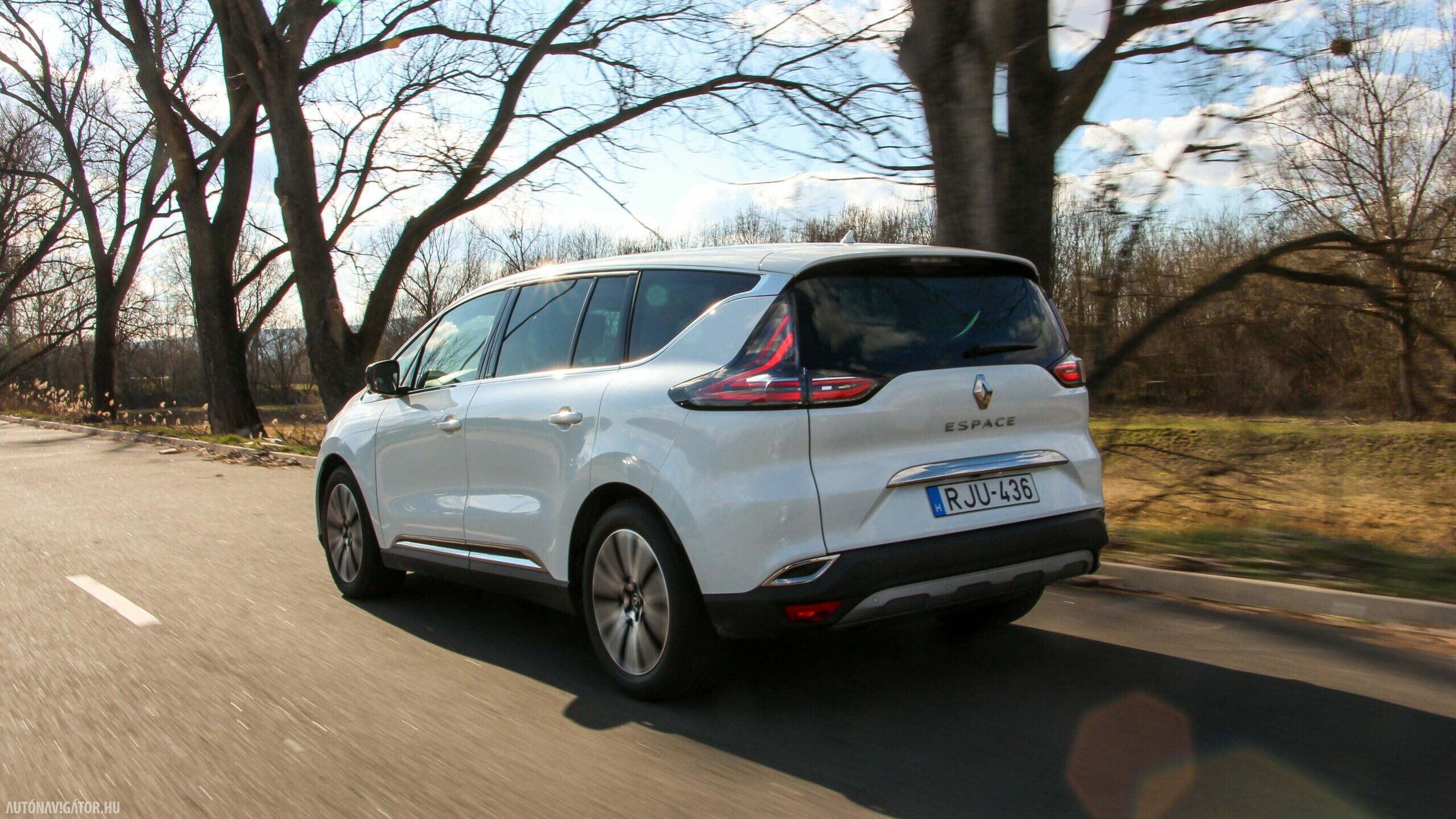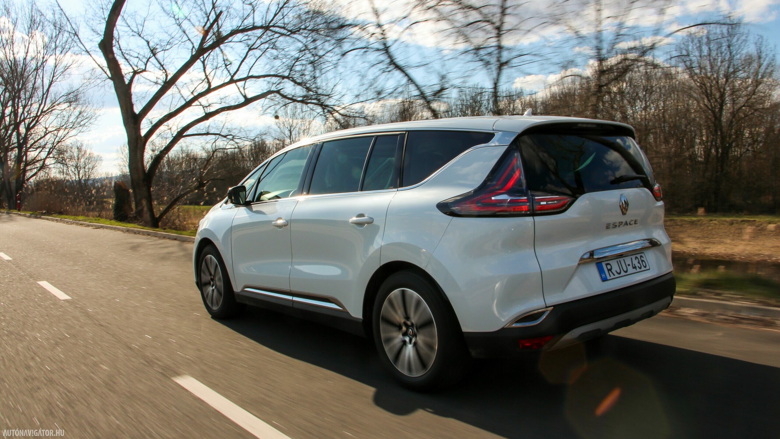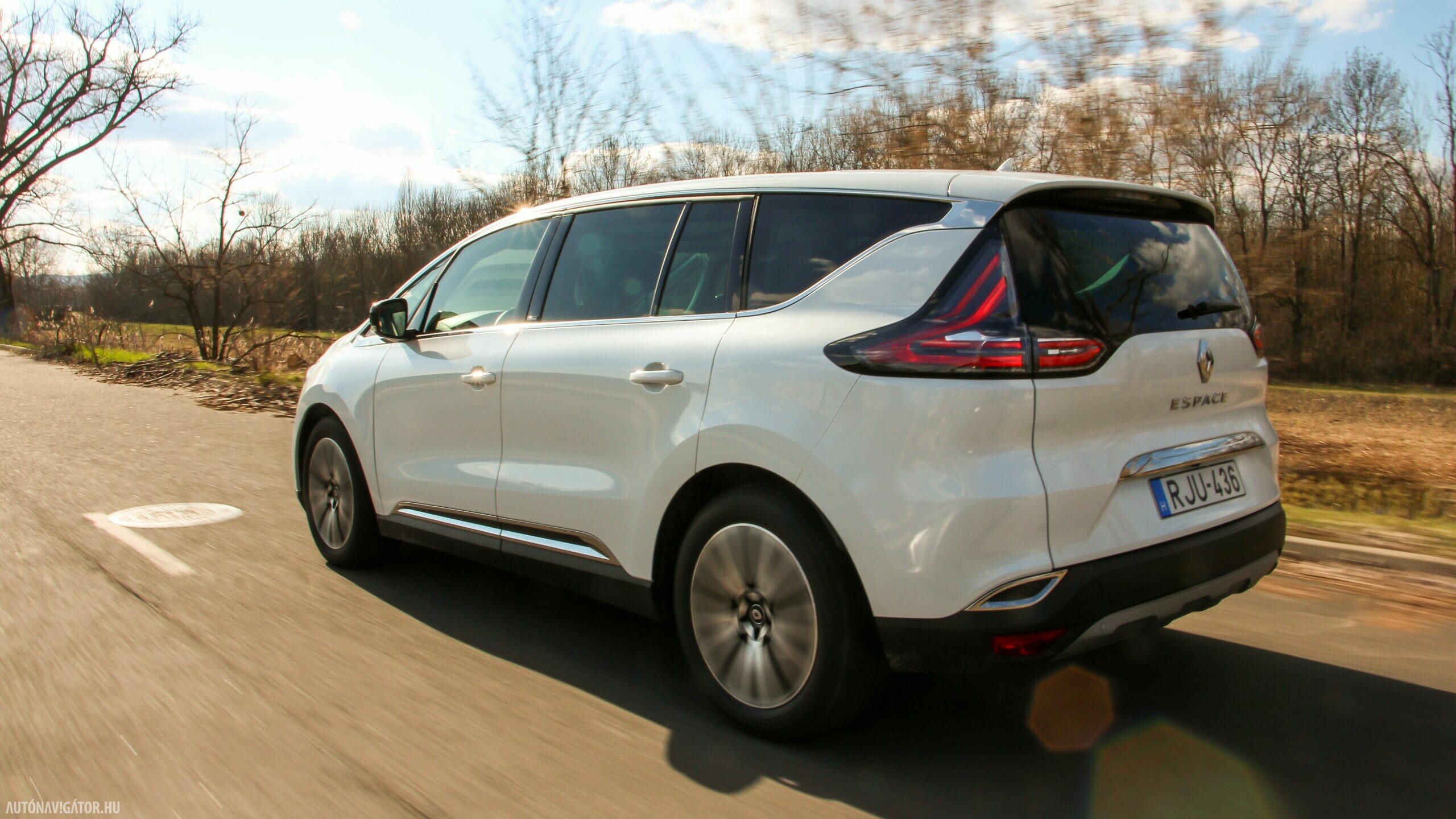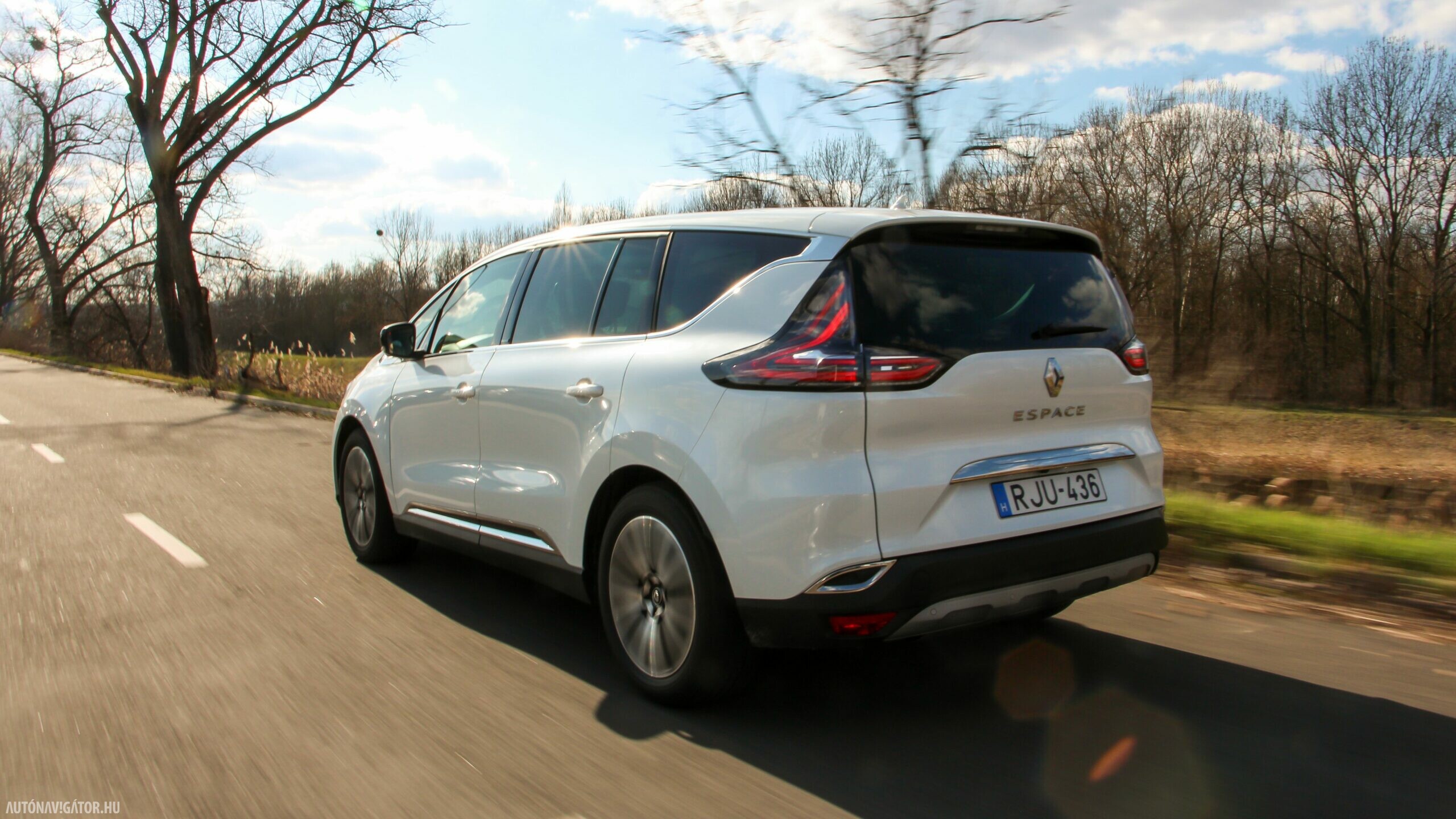 Másfél hetet és mintegy 700 kilométert töltöttünk együtt az Espace-szal, amiből kiolvasható: túl messzire azért nem mentünk, a másfél hét első részét pedig még itthon, zömében városban tettem meg vele. A 2,0 literes dízel kellően erős, a 0-100-as sprint 9,1 másodperc, a végsebesség 215 km/óra vele, ami már kellően tisztességes. Hangja jól szigetelt, rezonanciája minimálisan érezhető csak az utastérben. A 6 fokozatú EDC váltó tempója passzol ahhoz, hogy egy egyterűvel nem lámpától lámpáig akarunk versenyezni. Ha viszont szükséges egy előzés, a 400 newtonméterrel gond nélkül lehet, és akkor elég gyorsan is kapcsol vissza az automata. Motorfék üzemhez a kecses váltókarral kézzel is kapcsolhatjuk, a Tátrában autózva a lejtőkön bőgettem is a lejtőkön a motort, de így legalább alig kellett féket koptatni. Az adaptív lengéscsillapítókkal és az elektromechanikus szervokormány rásegítésének variálásával elég jól érezhető különbségeket ad a menetmódválasztó, látványosat is, hiszen az utastér LED fényeit és a műszerblokkot is variálja. Ha már kormányzás: a négykerékkormányzás zseniális: meglepően jó fordulékonyságot, döbbenetes kanyarjellemzőket és stabilitást ad.