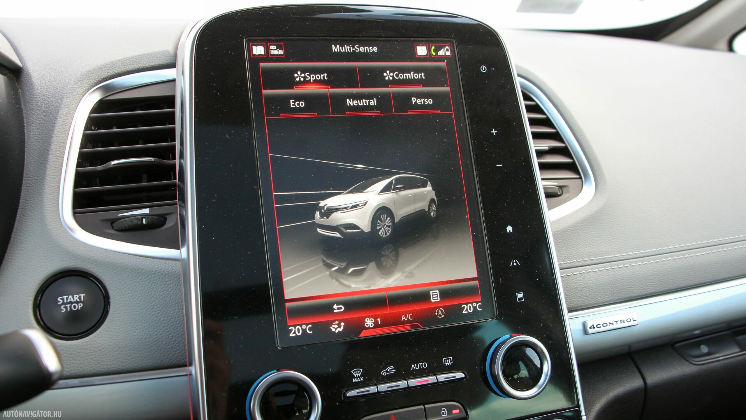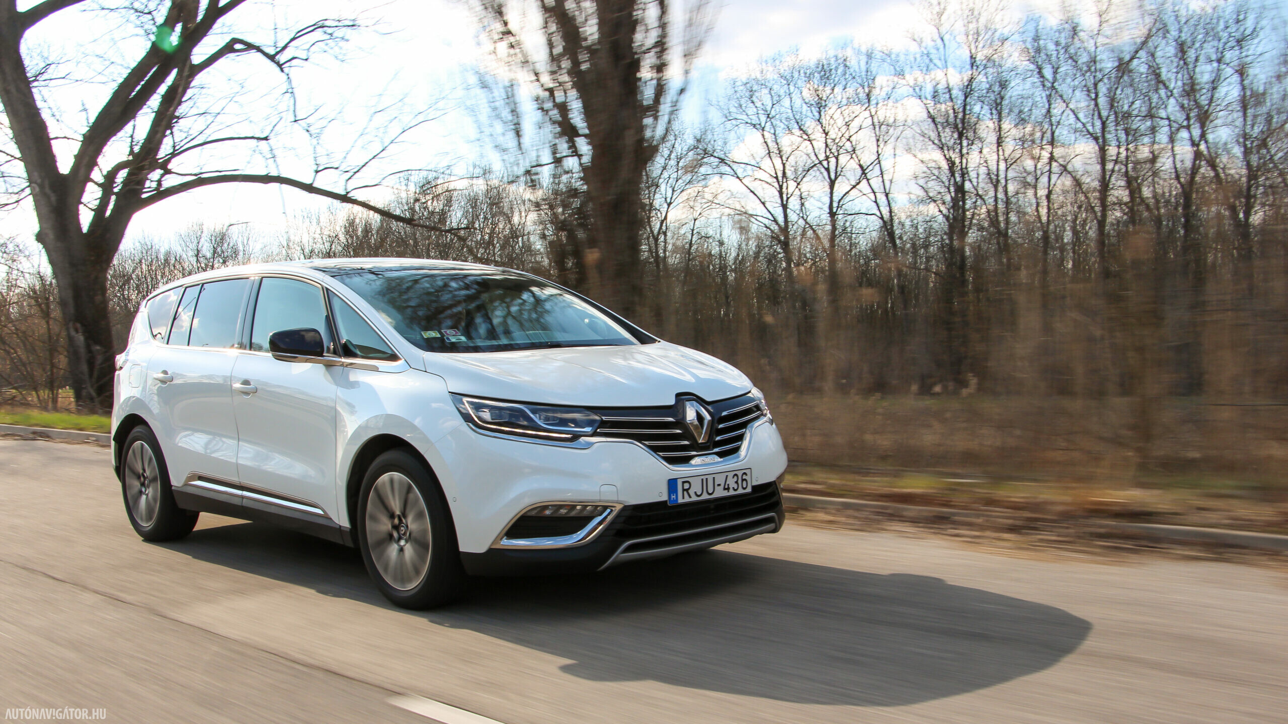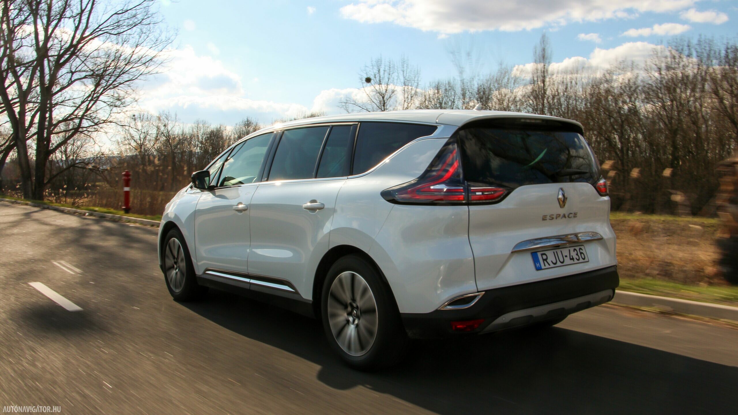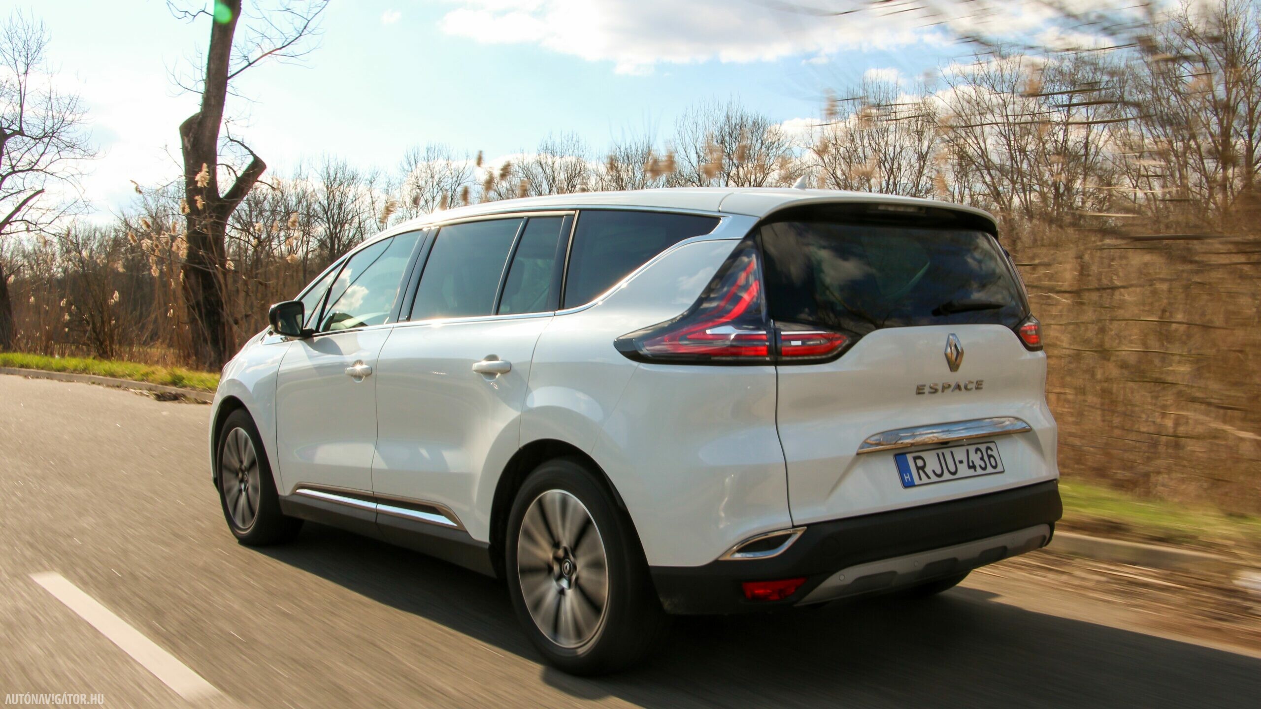 Másfél hetet és mintegy 700 kilométert töltöttünk együtt az Espace-szal, amiből kiolvasható: túl messzire azért nem mentünk, a másfél hét első részét pedig még itthon, zömében városban tettem meg vele. A 2,0 literes dízel kellően erős, a 0-100-as sprint 9,1 másodperc, a végsebesség 215 km/óra vele, ami már kellően tisztességes. Hangja jól szigetelt, rezonanciája minimálisan érezhető csak az utastérben. A 6 fokozatú EDC váltó tempója passzol ahhoz, hogy egy egyterűvel nem lámpától lámpáig akarunk versenyezni. Ha viszont szükséges egy előzés, a 400 newtonméterrel gond nélkül lehet, és akkor elég gyorsan is kapcsol vissza az automata. Motorfék üzemhez a kecses váltókarral kézzel is kapcsolhatjuk, a Tátrában autózva a lejtőkön bőgettem is a lejtőkön a motort, de így legalább alig kellett féket koptatni. Az adaptív lengéscsillapítókkal és az elektromechanikus szervokormány rásegítésének variálásával elég jól érezhető különbségeket ad a menetmódválasztó, látványosat is, hiszen az utastér LED fényeit és a műszerblokkot is variálja. Ha már kormányzás: a négykerékkormányzás zseniális: meglepően jó fordulékonyságot, döbbenetes kanyarjellemzőket és stabilitást ad.