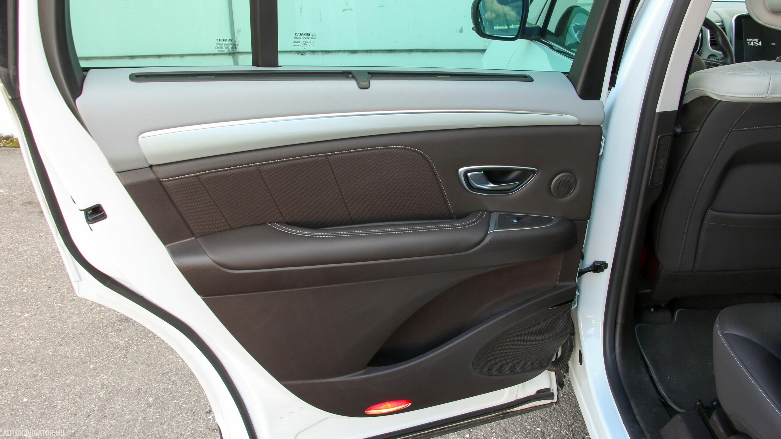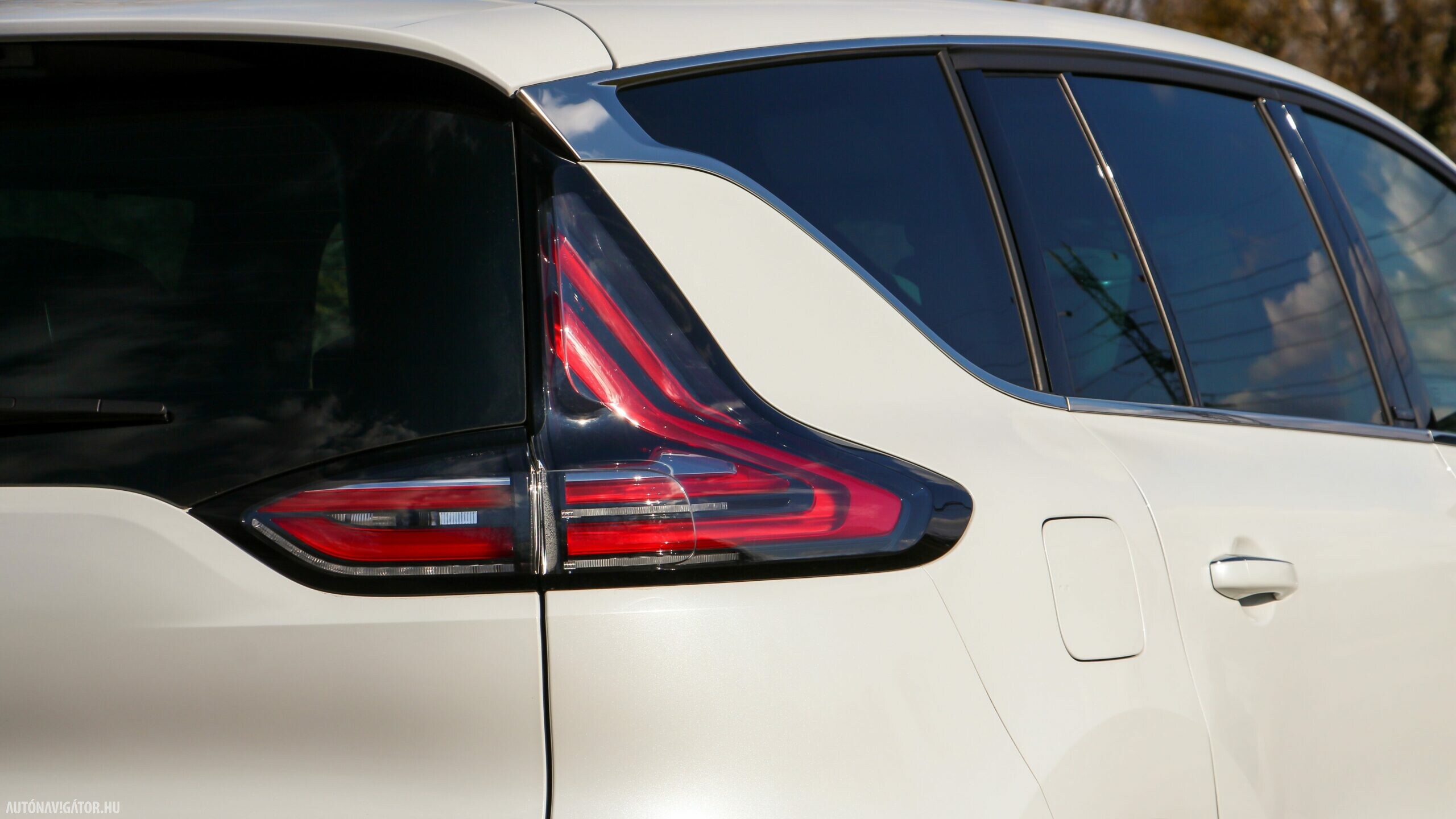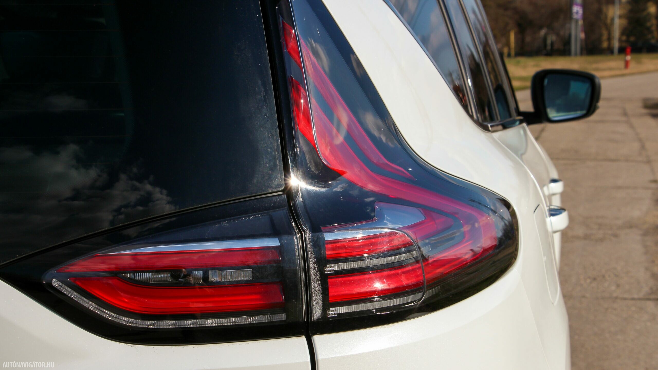 Általában nem vagyok a fullextrás verziók híve, de az Espace-hoz nagyon illik a csúcskivitel. Tér mindenképp van benne bőven, ehhez pedig nagyon passzol ez a szalonhangulat. Az első ülések vaskos oldaltámaszukkal, állítható laphosszukkal, valamint fűtésükkel, szellőztetésükkel és masszázsukkal hosszú távokon is kényeztetők. Hátrafelé haladva csökken az ülőlapok hossza, de a második sorban még elég kényelmesen lehet utazni, akár hárman is egymás mellett. Ott mindhárom ülés Isofix csatlakozós, mivel egyenként tologathatók is, valóban be is lehet tenni három gyerekülést. Ha csak szűk mértékben, de a támlák dőlése is szabályozható. A harmadik üléssorban maguk a székek nem rosszak, hely viszont nagyon kevés jutott oda, persze rövidebb távokhoz, pláne gyerekeknek teljesen megfelelők. Jó pont, hogy csomagtér még hét ülés mögött is van annyi, hogy egy egynapos kirándulás, strandolás cucca simán beférhet. Ha pedig csak négyen-öten megyünk, bőségesen elég a második sor mögött 614 literes csomagtér.