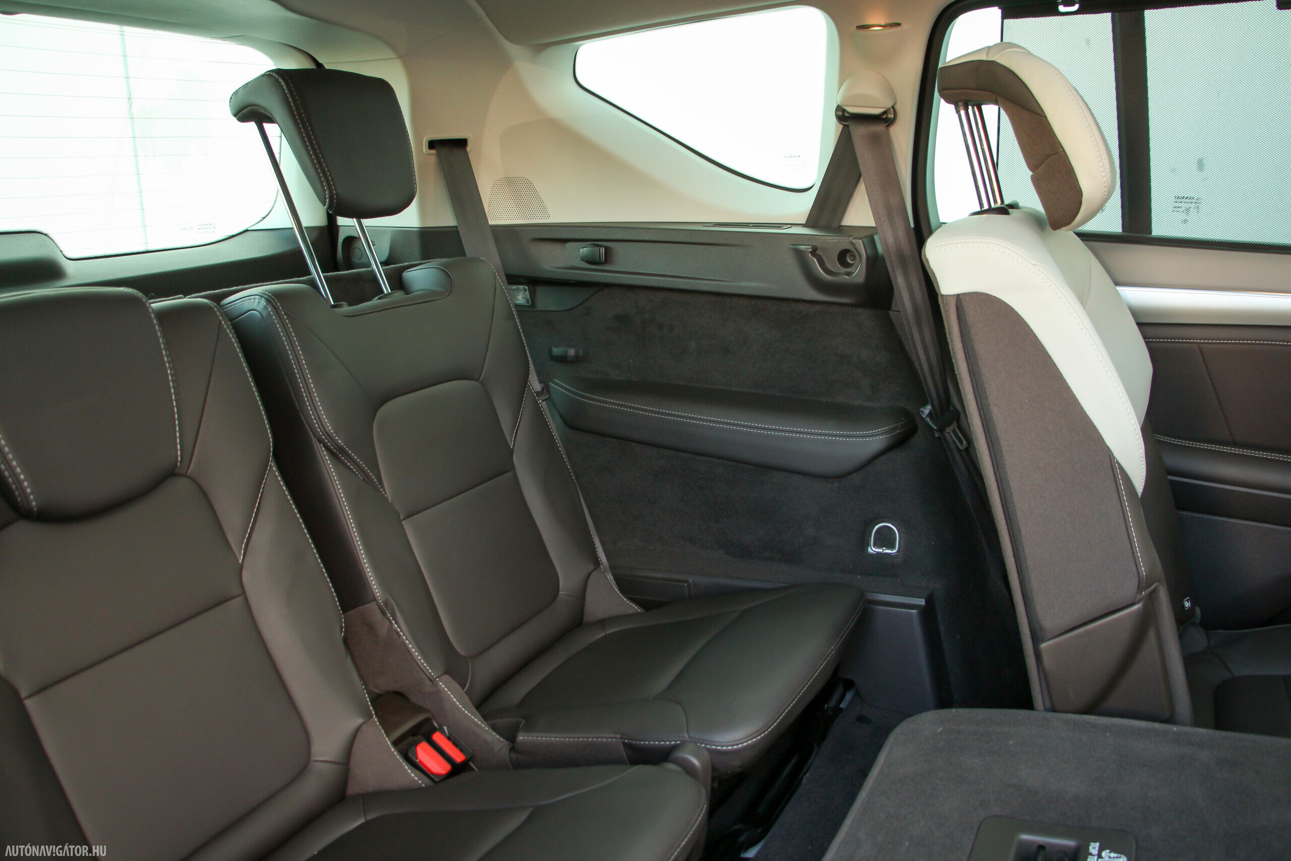 Leghátul szükségüléseket kapunk (300 ezer Ft felárért), ám a középső sor szélső helyei még ülésfűtést is adnak, elöl utóbbi mellé szellőztetés és masszázs is jár. USB csatlakozó mindenképp van a hátsó utasoknak is, újabb 300 ezer forintért az első fejtámlákba épített DVD mozirendszer vagy ugyanannyiért nyitható panorámatető is kérhető