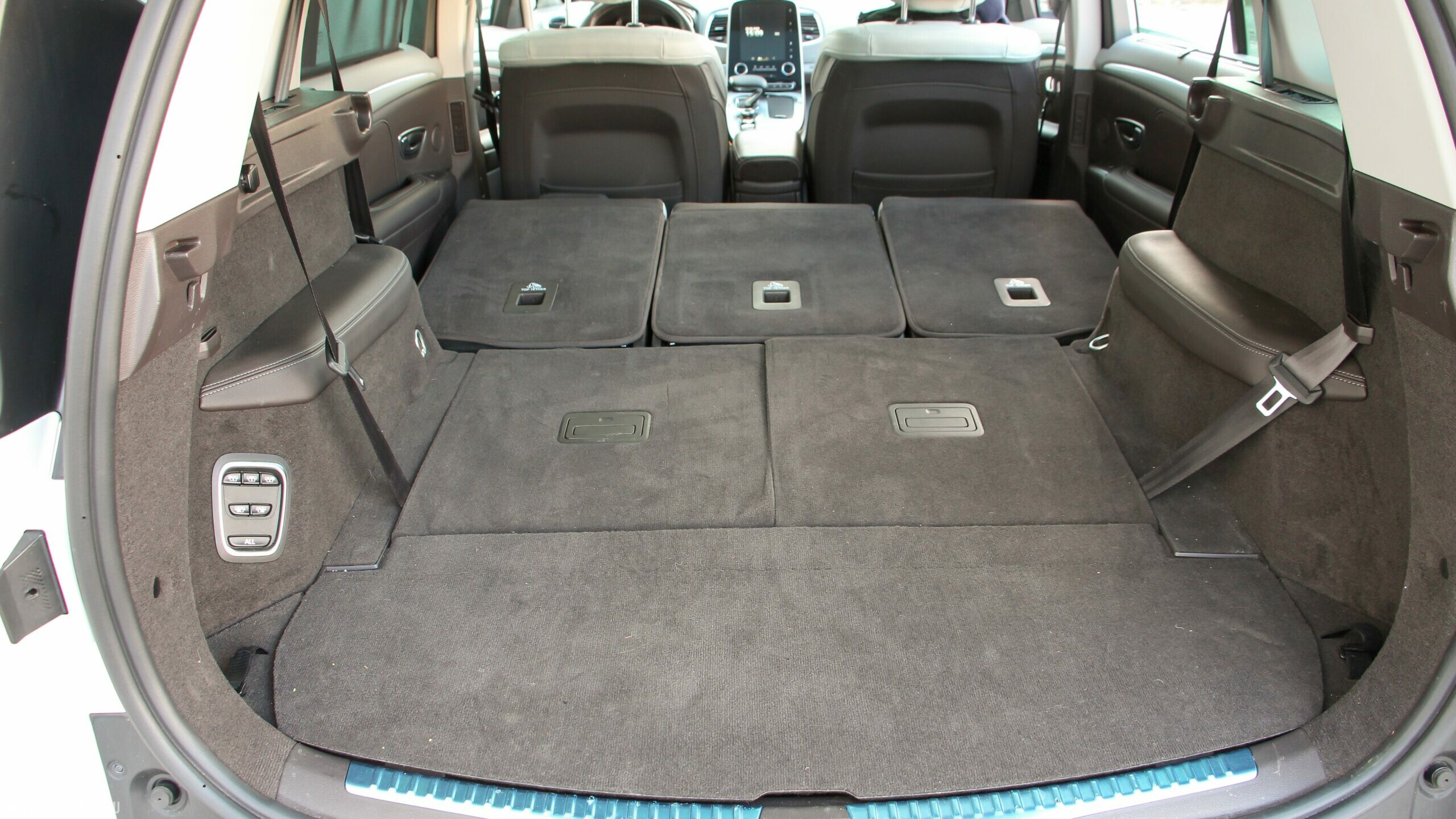 Még 7 ülés mögött is értelmezhető, 247 literes csomagteret kapunk. Az 5 ülés mögötti raktérre egy előző generációs Grand Scenic simán rálicitál, de van azért bőven hely