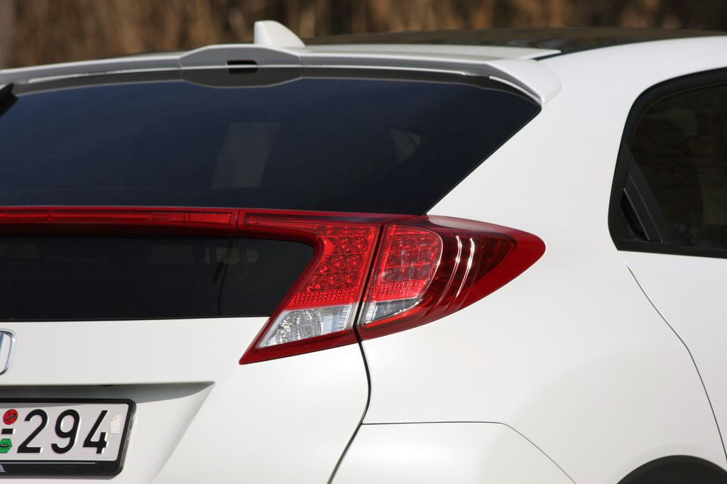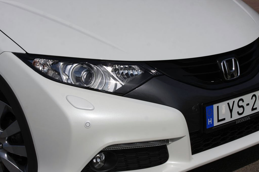 LED-es menetfényeivel mindig feltűnő a Civic - ilyeneket csak az ötajtós kap. Az Executive Xenon fényszórói automatikus kapcsolásúak, még a reflektort is számítógép vezérelheti - jól jön, ugyanis a tesztautó tompítottja nagyon gyenge volt