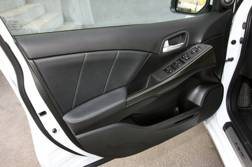 A fullextrás Executive Civic kényelmét már alaphangon megadja a kulcs nélküli nyitó- és indítórendszer, de a komfortra amúgy sem lehet panasz. Tágra nyílnak az ajtók, az ülések nem kerültek túl mélyre, formázásukkal kényelmesek. A sofőr székének nem csak deréktámasza, oldaltartása is elektromosan állítható, teljesen a vezetőre szabható. Nincs is gond a vezetési pozícióval, az tökéletesen a kezelőszervekhez állítható, olyan csorba mondjuk megeshet, hogy a digitális sebességkijelző épp takarásban lesz, vagy elfogy a fej fölötti tér, abból ugyanis nincs sok. A kijelző-kavalkád egyébként eltúlzott, bárhogyan is ülünk, valami mindenképp takarásban lesz. Hiába szerepelnek intelligens, lapozható monitorok a puha műanyagból formált űrhajós műszerfalon, a tervezők nem spóroltak el egy-egy méretes órát a hűtővíz hőfokától és az üzemanyag szintjelzőjétől. Ezek valóban fontos információk, de azért helytakarékosabban is megoldhatták volna őket.[BANNER type="1"]