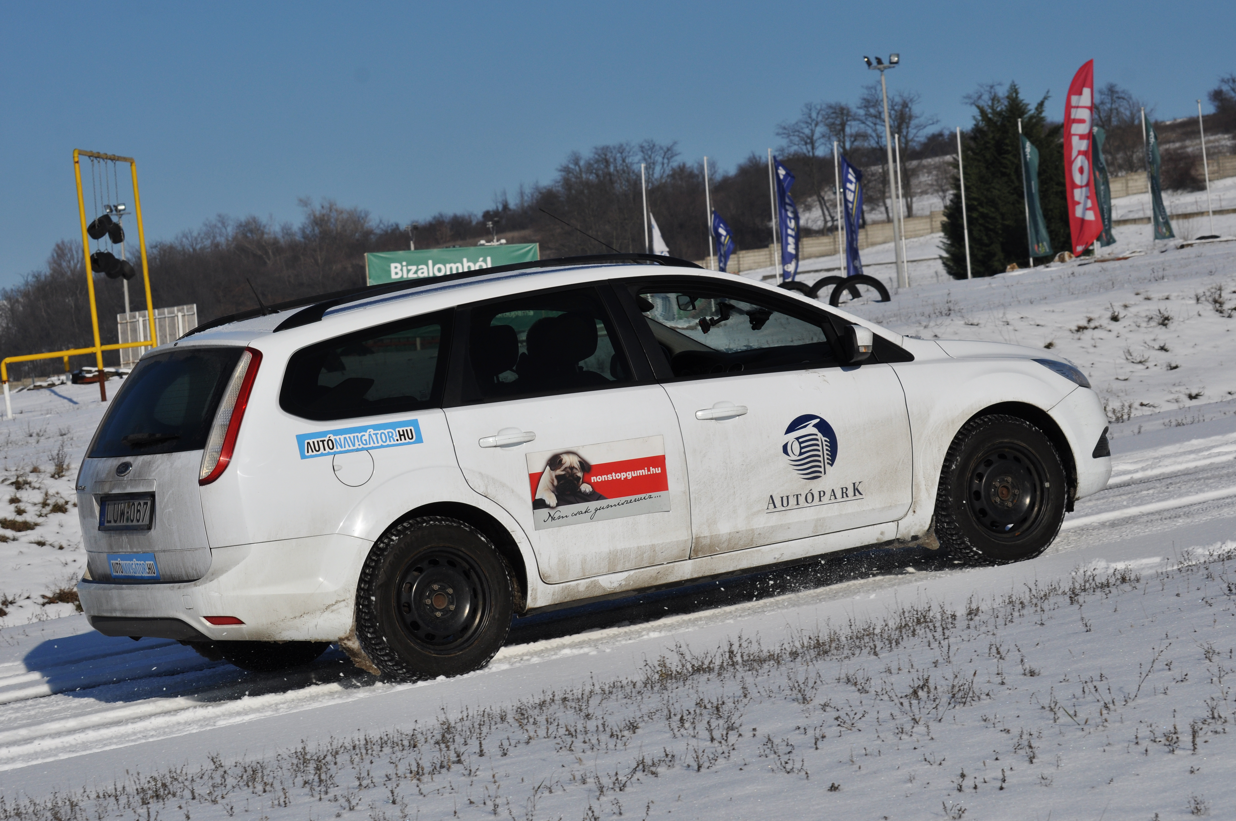 Januárban valódi hóban teszteltünk, míg őszi gumitesztjeinken száraz és nedves aszfalton, valamint a havas utat tökéletesen modellező nedves műgyantán mérünk. Utóbbi egységesebb mérési körülményeket teremt, az pedig mindenképp egyértelmű, hogy télen a valódi téli gumi a legjobb választás