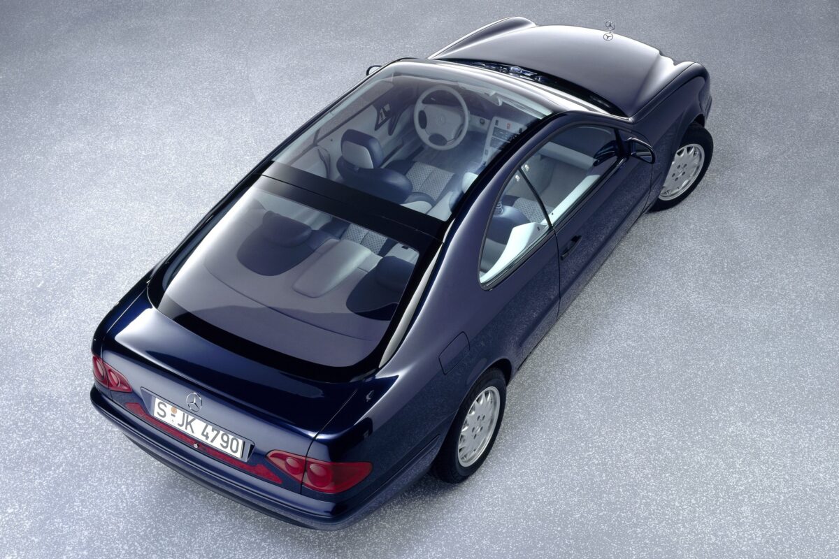 25 évvel ezelőtt a Mercedes nagy “termékbővítési” kampánya már javában folyt, amikor egy új kupé érkezett a palettára. 1996 áprilisában bemutatták az SLK roadstert, aztán 1997 januárjában a CLK kupéra került sor. Az Észak-Amerikai Autószalonon bemutatott újdonság is jelezte, hogy fiatalítani kíván a csillagos márka a vásárlóközönségén, pontosabban szeretné a fiatalabb korosztályokat is elérni a termékeivel. Ha az SLK után valaki még nem lett volna biztos benne, hogy új szelek fújdogálnak a Mercedes-Benz háza táján, akkor az Detroiti Autószalonon bemutatott CLK már tuti meggyőzte róla. És ez még csak a kezdet volt Detroitban, hiszen még ugyanabban az évben érkezett az A-osztály, majd az M-osztály, ami egyből filmszerepet is kapott a Jurassic Park második részében, és hiába majszolták darabokra a T-Rexek, nagyot lendített a népszerűségén az, hogy a mozivásznon is láthatta a nagyközönség. Aztán 1998-ban a CLK tetejét “levágták”, bemutatták a kabriót is, persze eközben a többi modellsorozatot is frissen tartották. Ezekkel az új típusokkal le is zárult a fiatalítás első szakasza, de a másodikban sem csökkent a márka merészsége. 2003-ban bemutatták a McLaren nevét is viselő SLR-t, 2004-ben pedig a CLS-t. Na, de nagyon előreszaladtunk, vissza a CLK-hoz! Szóval a CLK, pontosabban az azt előrevetítő tanulmányautó 1993-ban mutatkozott először a nagyközönség előtt a Genfi Autószalonon. Elég nagy szenzációt okozott, hiszen a Mercedes új formanyelve köszönt vissza a négyüléses kupéról. Négy ovális szemet, azaz fényszórót kapott, két nagyot kívül és két kisebbet belül. A tanulmányautón ráadásul hatalmas üvegtető is növelte a látványosságot, úgyhogy nagyon gyorsan beszédtéma lett az új Mercedes kupé, ám pontosan ez volt a cél. „Megismertetni a közönséget az új dizájnelemekkel” - ahogy Peter Pfeiffer fogalmazott, aki kulcsszerepet játszott a kupétanulmány megrajzolásában a vezető formatervező Bruno Sacco mellett. [BANNER type="1"] Viszont a „négyszemű” arc először a W210-es gyári kódszámú E-osztályon jelent meg sorozatgyártásban 1995-ben. Bár a kupé tanulmányautó nagy vitákat kavart a márkarajongók között, de az E-osztály sikere megmutatta, hogy valószínűleg a négyszemélyes kupé (valamint a kabrió változat) sem fog leszerepelni. A sorozatérett CLK bemutatására azonban négy évet kellett várni, annak ellenére, hogy végül szinte megegyezett az 1993-as tanulmányautóval. Talán szándékosan húzták ilyen sokáig a bemutatást, lehet, hogy nem akarták az E-osztályról elvonni a vásárlók figyelmét.
