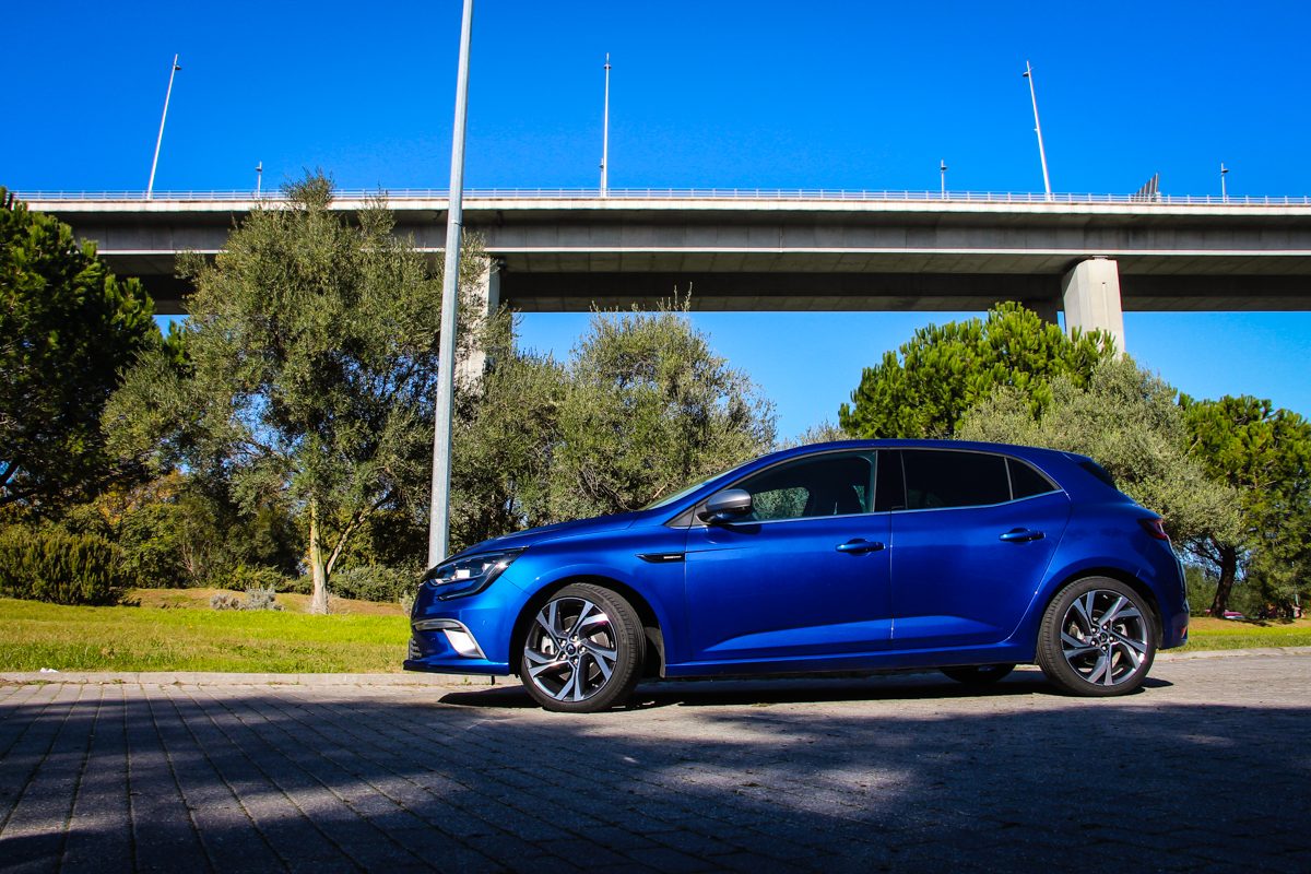 A dizájn vezérel. A Mégane IV programban kiemelkedő szerepet kapott a kocsi megjelenése, hiszen a franciák elmondása szerint még mindig ez az egyik vezérszempont autóvásárláskor. Egy Golf uralta piacra lépve talán a dizájn lehet a Mégane legfőbb mentsvára. Az első ajtó vonaláig szinte teljes mértékben megegyezik az épp egy héttel ezelőtt vezetett és bemutatott Talismannal, hátrébb azonban domborodó szélesítése adhat neki egyediséget. Természetesen itt is visszaköszön a dinamizmus. E szellemiségben rajzolták a C alakú LED fényszórót és a szintén LED-es hátsó menetfényt, ami valóban mutatós, és könnyen felismerhetővé teszi az autót. Színpalettájában új a Brilliant Blue árnyalat, és kedvencünk, a GT-hez rendelhető sportos kék.