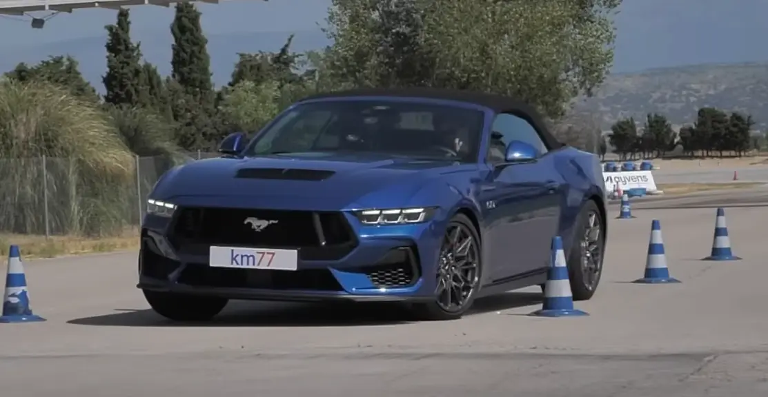 Nem a szlalom a Mustang erőssége, de talán ez senkit nem lep meg, hiszen az orrában hordott V8-as, és a hosszú tengelytáv nem kedvez ennek a műfajnak. Viszont a kikerülő manővert azonnal szinte tökéletesen teljesítette 77 km/h tempóval. Csupán egyetlen bóját "vitt magával", ami leginkább a sofőr hibájának tűnik.