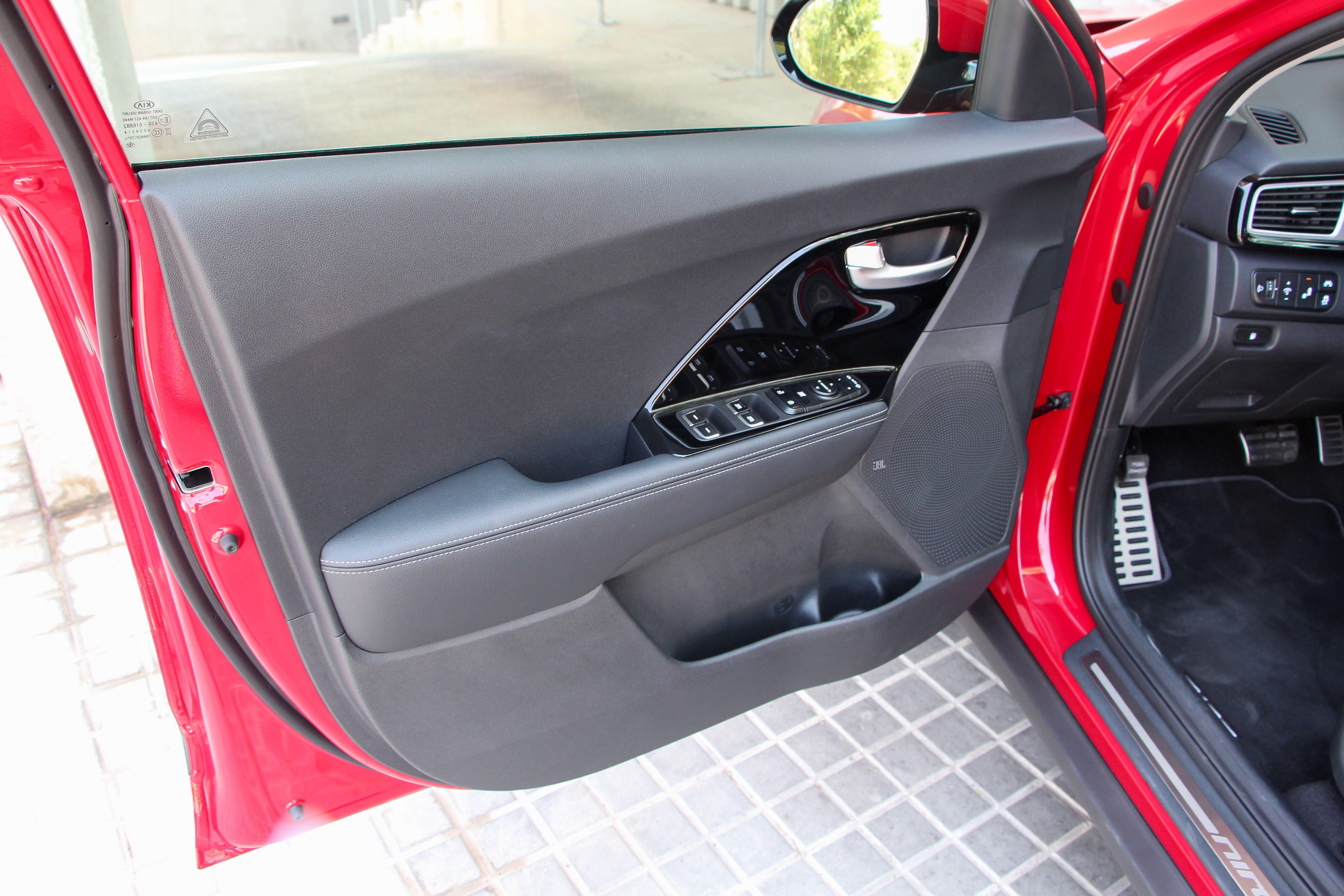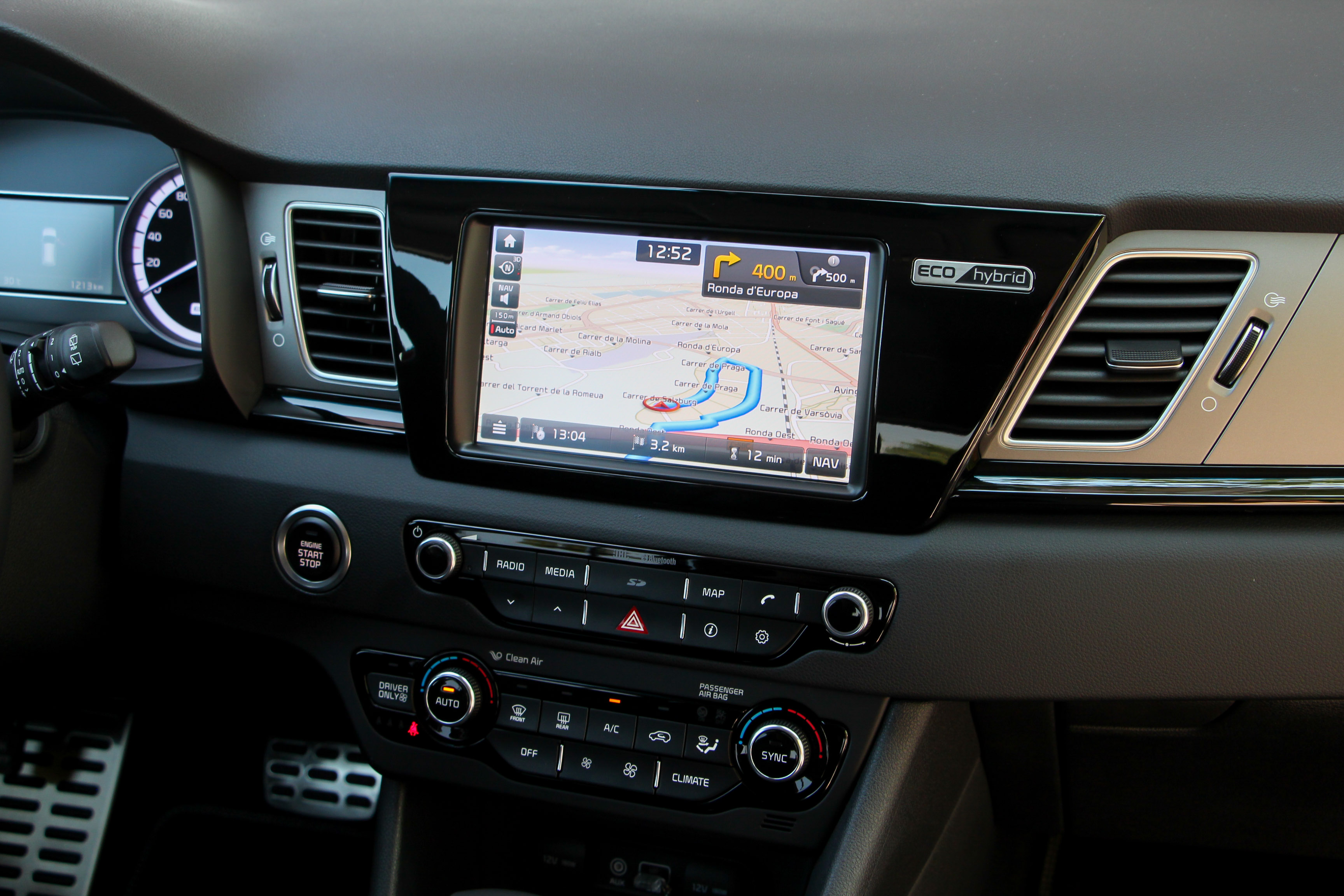 A Niro utastere sem űrhajós, sokkal inkább hagyományos autós, de kellően modern. A középkonzol aljára, a váltó köré és az ajtókra itt is kerülhet fehér zongoralakkos műanyag (meg persze fekete is), ahogyan a Prius IV esetén is. Viszont ez sem zavaró, a beltéri dizájn összességében lenyűgöző. Szépek, egységesek a gombok, az elöl automata ablakemelők billentyűi prémiumautókban is gond nélkül elmennének, de a hifi és a klíma gombsora is nagyon szépen kidolgozott. Tipográfiában, dizájnban megvan az összhang a középkonzoli érintőképernyő és a Supervision műszeregység közötti kijelző esetén is. Igaz, a középkonzoli kijelzőből csak a nagyobbik, 8 colos verziót láthattuk, alapáron 5 colos, navit nem, de a márkánál első ízben Android Auto támogatást is adó jár.