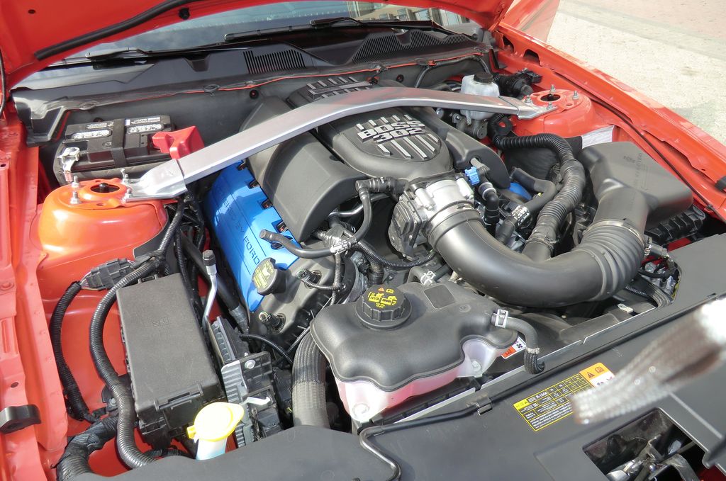 Az előbbi gyorsulási értékek eléréshez 5,0 literes, hengerenkénti négyszelepes, és a tengerentúlon még messze nem annyira megszokott változó szelepvezérlésű, 444 lóerős, 515 Newtonméter nyomatékú V8-as segíti a Bosst, melynek végsebessége elektromos korlátozással 250 km/óra lehet – azaz e verzió méltó ellenfele az európai szupersportkocsiknak is. A lényeg itt azonban mégis inkább a megjelenésen és az előadáson van.