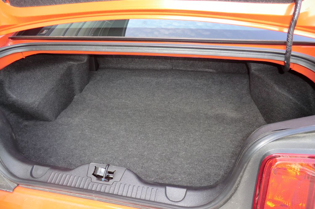Kívülről a hatalmas emblémával nem, csak a kulcsról nyitható a 380 literes tér, kötelező amerikai felszerelésként belülről vésznyitóval is oldható fedele