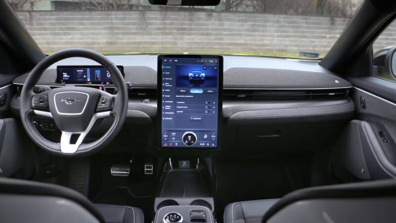Itt is gomb helyettesíti a kilincseketA tengelytáv (2,99 méter) azonos a többi Mach-E modellével, de pici méretváltozások azért láthatók a kasztnin a kis dizájncsemegék hatására. Az alapját adó GT-hez képest kb. 1 centivel rövidebb, és 3,6 centivel magasabb. 2258 kilogrammos saját tömegével a legnehezebb a Mach-E családban.