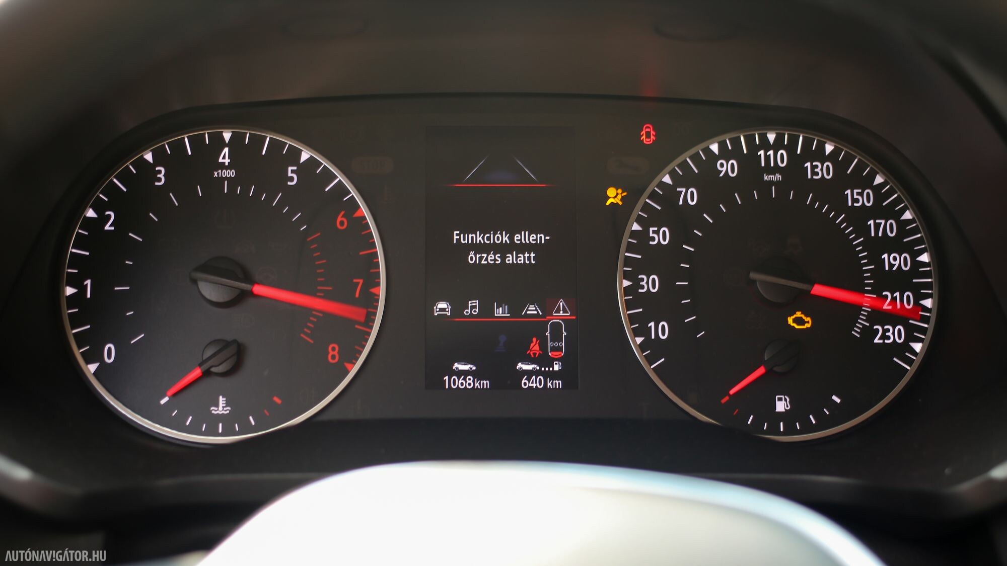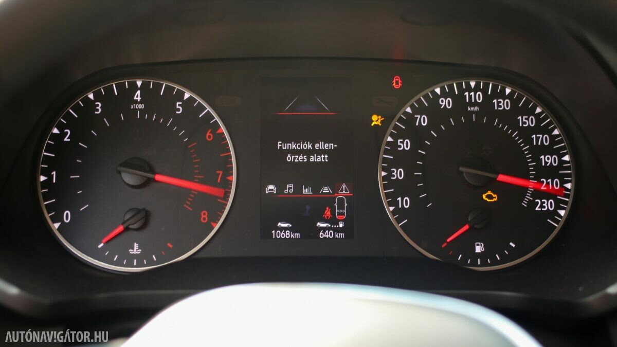 Az alapmotornál kissé mosolyogtató az indításkor végigfutó sebesség- és fordulatszámmérő, de ilyenkor legalább elmegy 200 fölé is mutató
