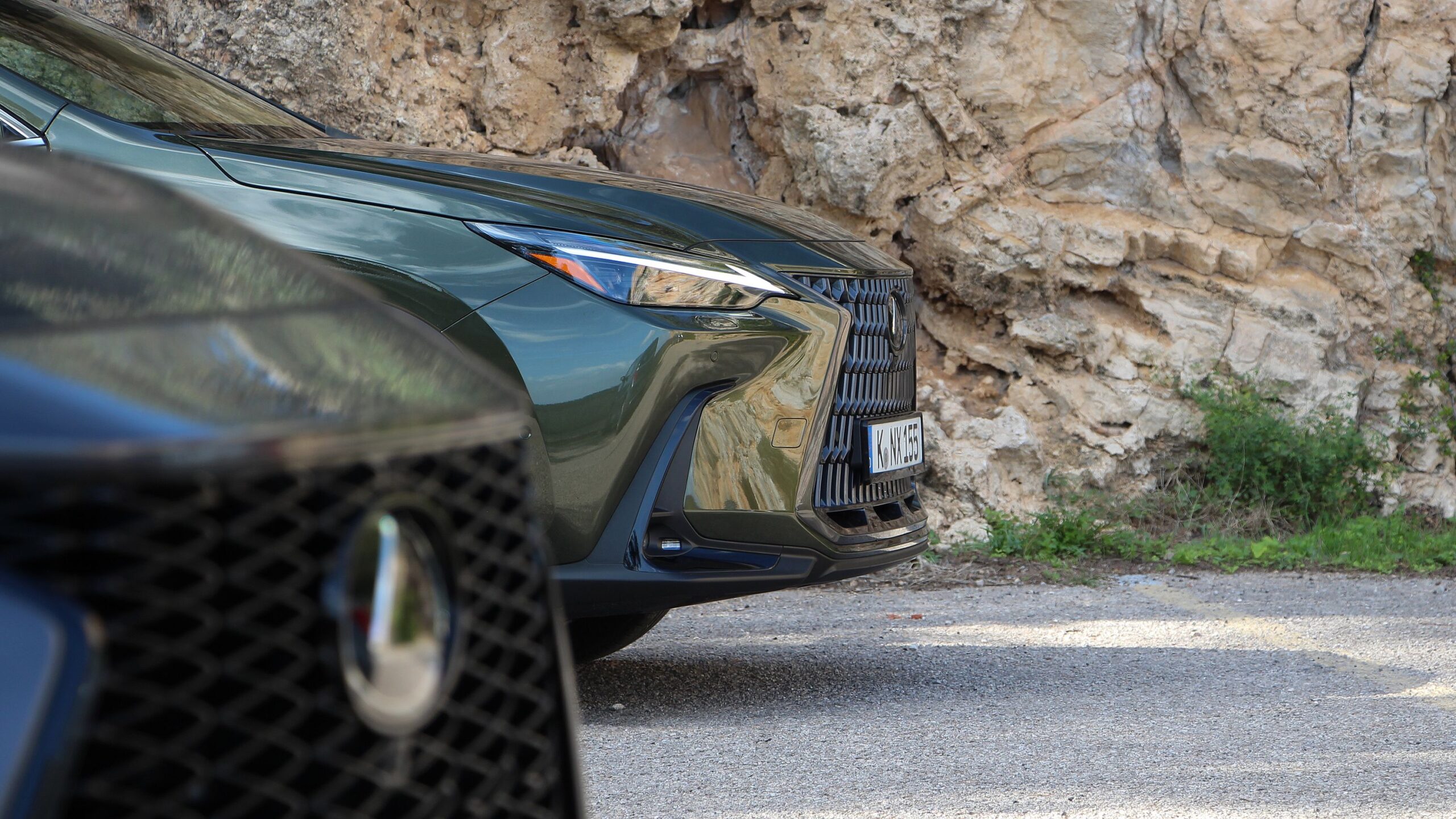 Az NX sem vesztett semmit extravaganciájából az új orrkialakítással, a hatalmas orsóforma hűtőmaszk megmaradt, picit módosított vonalakkal, kicsit átrajzolt rácselemekkel, amik modellváltozattól függően is eltérőek. Az autó oldalán is látványos, ahogy a fény-árnyék vonalakat meghúzták, ezáltal az is, ahogy a különböző napszakokban megtörik rajta a fény. Ha nem is túl hangsúlyosan, de a tetővonalat is megpróbálták kupésítani, hátul pedig a keresztben végigfutó fénycsík dobja fel a látványt. Jól állnak a sárvédődomborítások is a kompakt SUV-nak, és üsse kő, bevallom, hogy még a kamu légbeömlők is, pedig azokat sokszor túljátszottnak érzem egy-egy autón.