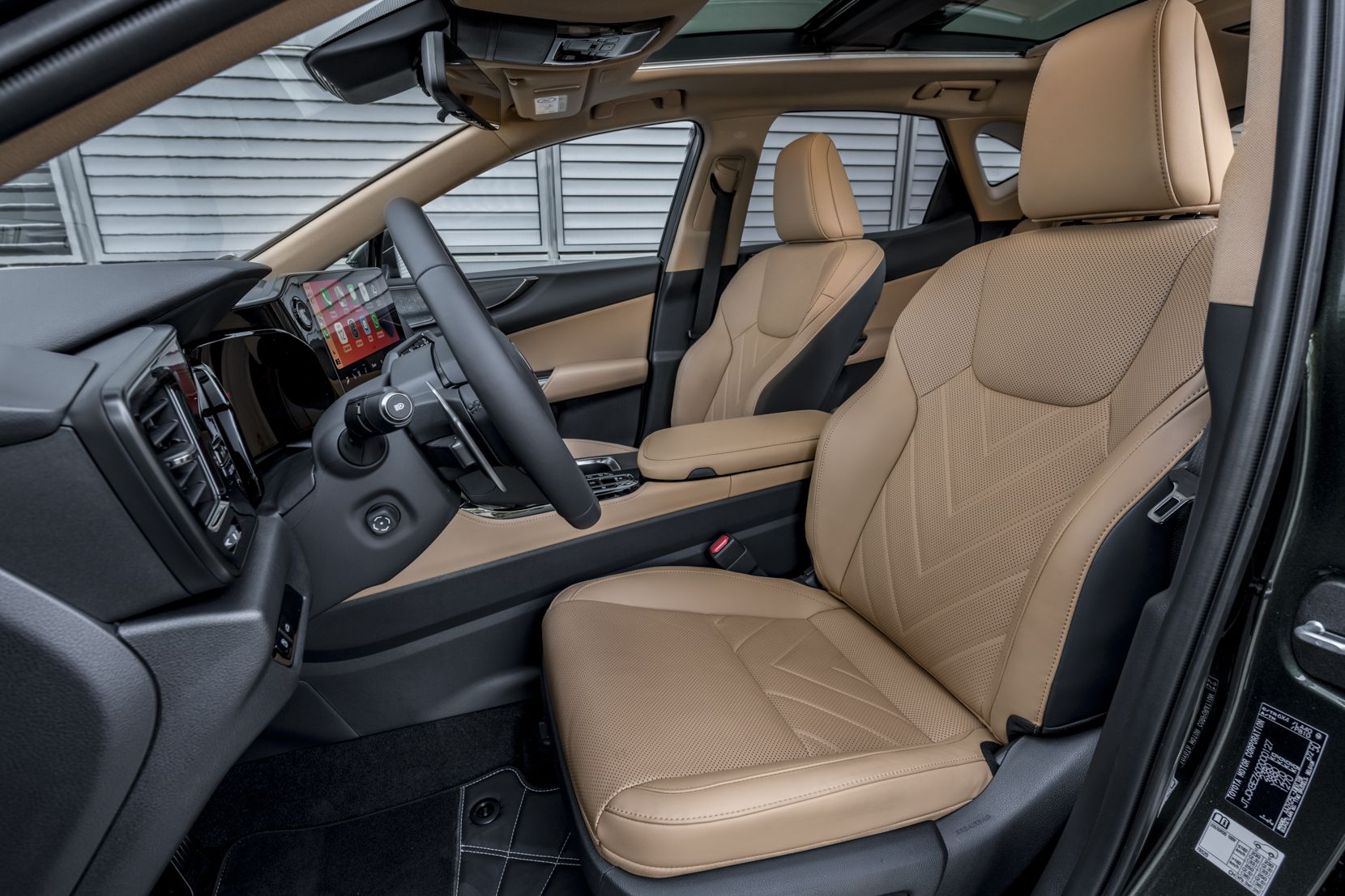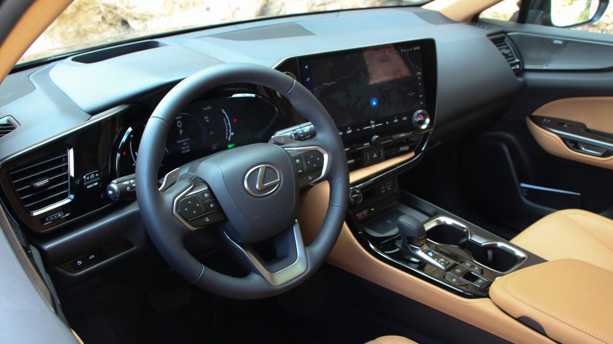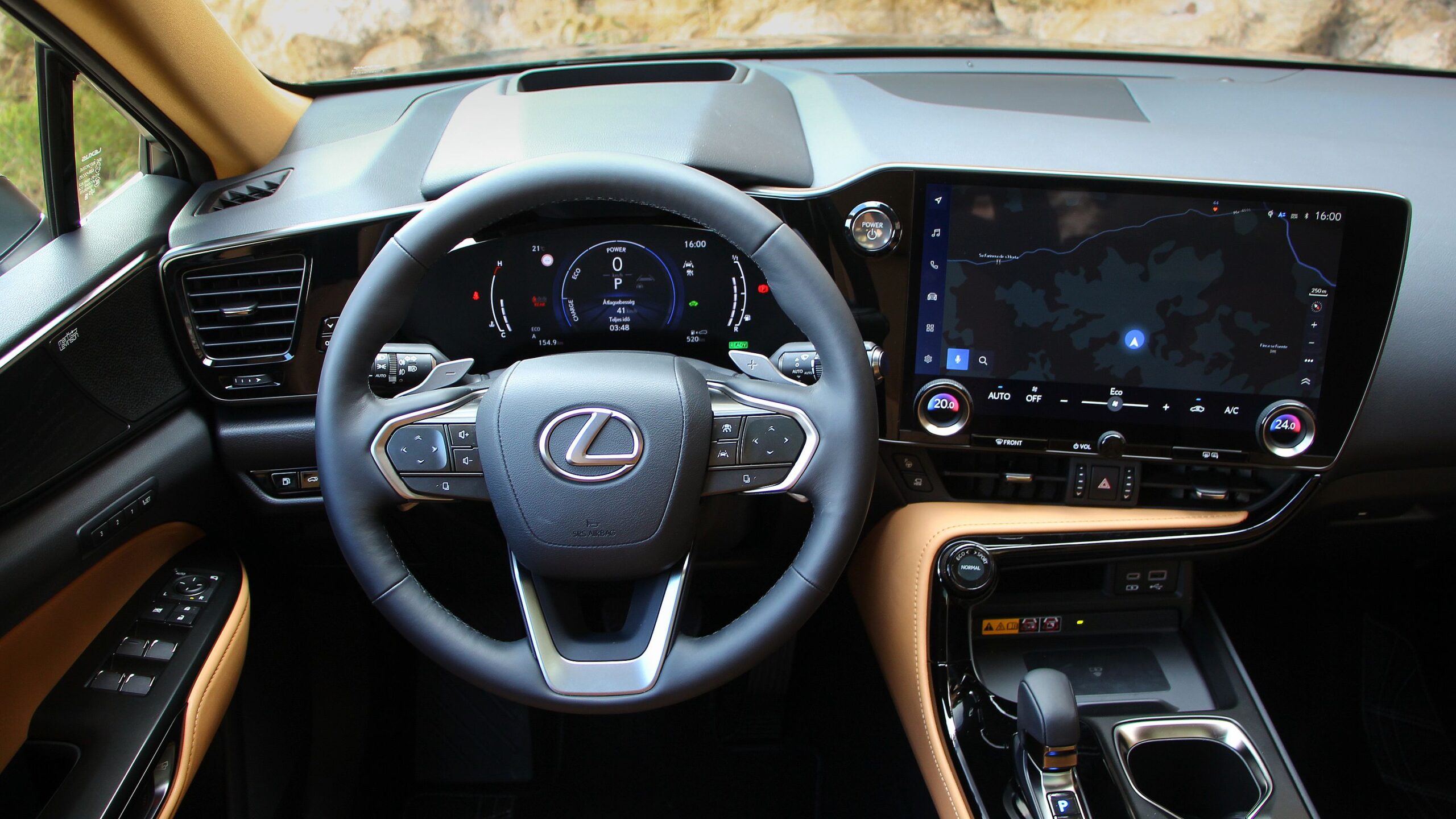 Az utastér kapcsán egy új kifejezést kell ízlelgetnünk, avagy megtanulnunk: Tazuna. Ez az új filozófia vezérelte a tervezőket az NX belsejének kialakításakor. A japán kifejezés arra utal, ahogyan a lovas a kantárszár segítségével irányítja a lovát, ennek megfelelően pedig középpontjában a vezető közvetlen, intuitív járművezérlése áll. A gyáriak szerint annak érdekében, hogy a vezető kizárólag az útra koncentrálhasson, a legfontosabb információk – a műszeregységen, a központi kijelzőn, a műszereken és az opcionális HUD kijelzőn – úgy helyezkednek el, hogy egy szempillantás alatt áttekinthetők legyenek. És igazat mondanak, mert egyszerűen zseniális a Lexus műszerfala.