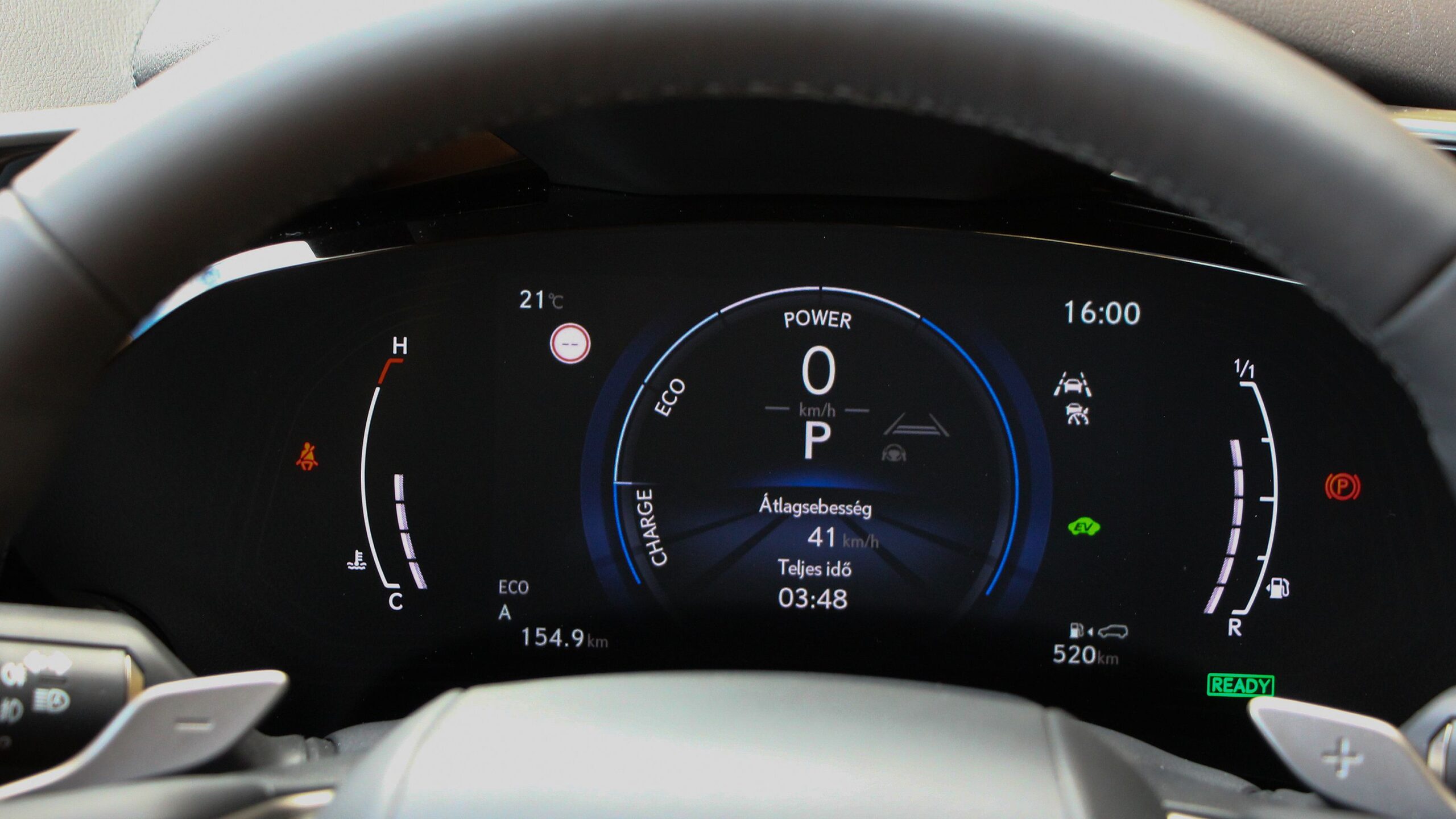 A konnektoros hibrid, a 450h+ rendszerteljesítménye 309 lóerő, 18,1 kilowattórás akkucsomagja a padlólemezen kapott helyet (a HEV modelleken a hátsó ülések alatt van), nagyobb tömege pedig jól érződik a tempós kanyarokban. Előnye a tisztán elektromos üzem, minimum 69 kilométert tud így megtenni WLTP mérés szerint, de városi ciklusban ez 89-98 kilométer is lehet. Lítium-ion akkumulátorát pedig 2,5 óra alatt lehet feltölteni a 6,6 kW-os fedélzeti töltő segítségével, 230 V/32 A-es csatlakozással. Ám itthon a Lexus előzetes tervei alapján az öntöltő hibridből fogy majd több, már csak az árszabás miatt is.