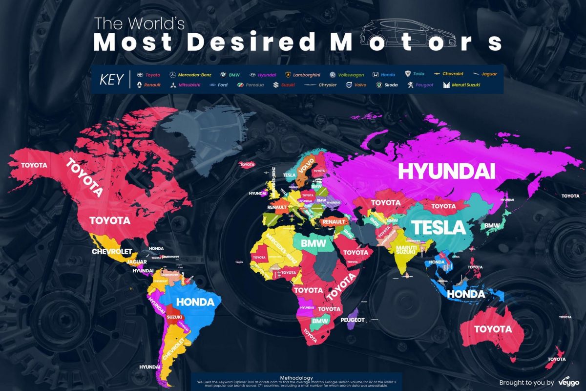 Tavaly a Veygo 171 ország keresési adatait vizsgálta, amelynek során a Toyota került ki győztesen a kereset nevek közül. Összesen 57 országban végzett az élen. Többek között az USA-ban, Kanadában, Ausztráliában, Új-Zélandon, Dél-Afrikában, Finnországban és a Fülöp-szigeteken is a Toyota volt a legkeresettebb.