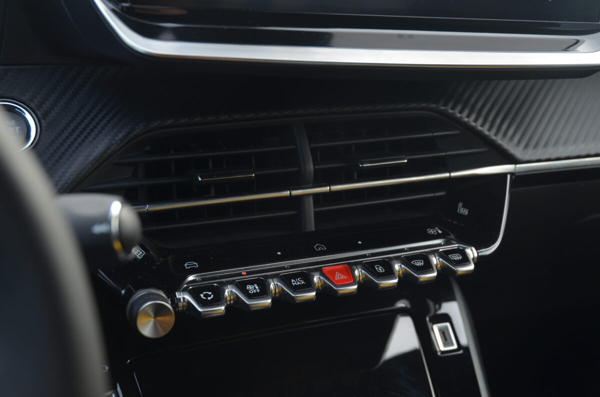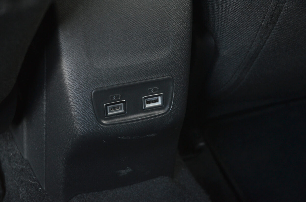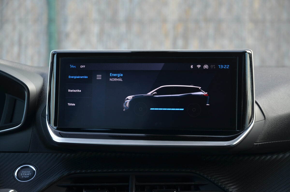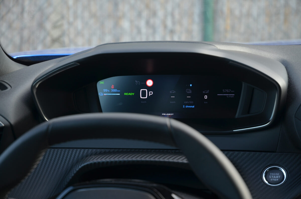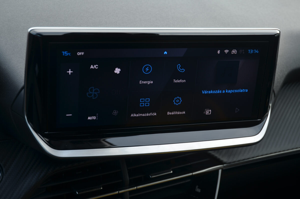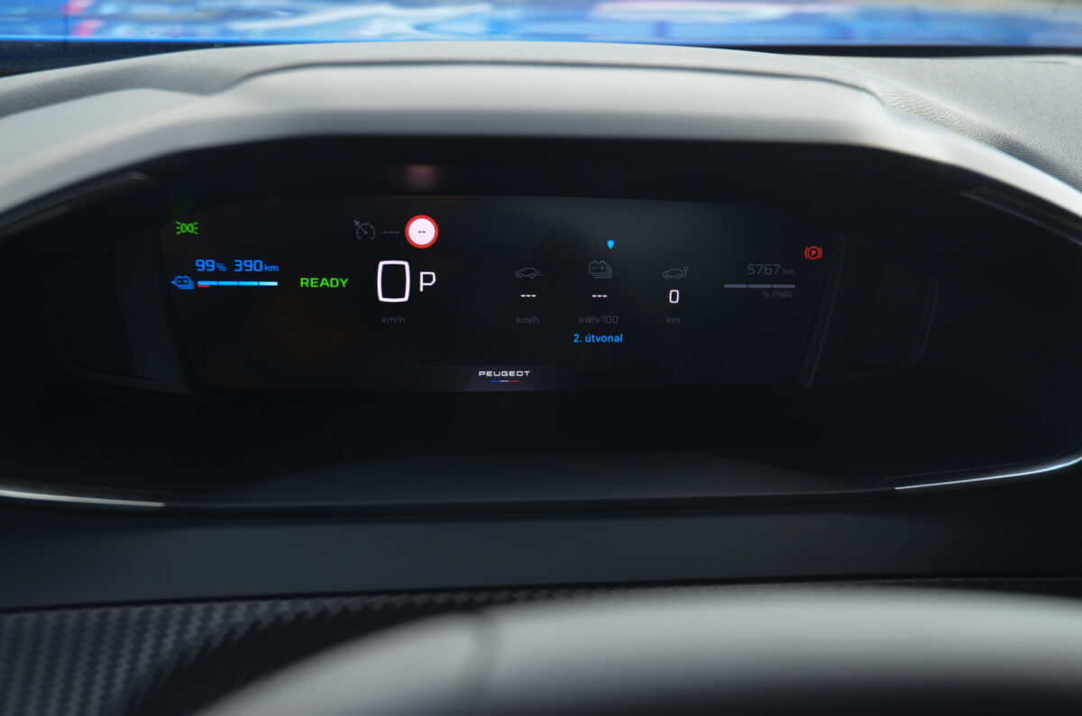 Az utastérben a Peugeot jól megszokott i-Cockpit műszerfala köszön vissza. Újdonság, hogy mostantól alapfelszereltség a 10 colos multimédiás kijelző, és a 10 colos digitális műszeregység. A ráncfelvarrás új szoftvert is hozott a modell életébe, amely alapvetően logikusan felépített, jól kezelhető, viszont még mindig feltűnően lassú. Igaz, ezt megpróbálták stílusos átmenetekkel eltakarni, de attól még észrevehető, hogy a kattintás után 2-3 másodperc, mire betölt az adott menüpont. Fizikai gombokból nincs sok, viszont jelentős változás, hogy száműzték a korábbi váltókart, a helyét pedig a Stellantistól megszokott ezüstgombocska vette át, ami jót tesz a helykihasználásnak. Hátul az USB-A és USB-C csatlakozó is található, ezzel is modernizálva egy kicsit a belteret, de a technika szerelmesei a vezeték nélküli töltőpadnak is örülni fognak, amely immár 15 kilowattal is képes tölteni az erre alkalmas telefonokat a korábbi 5 kilowatt helyett. Ha már a második üléssor: mivel az e-2008 az e-CMP platformra épül, így a hátsó sorban még ott figyel a kardánalagút, ám ettől függetlenül egy átlagos magasságú felnőtt még befér.