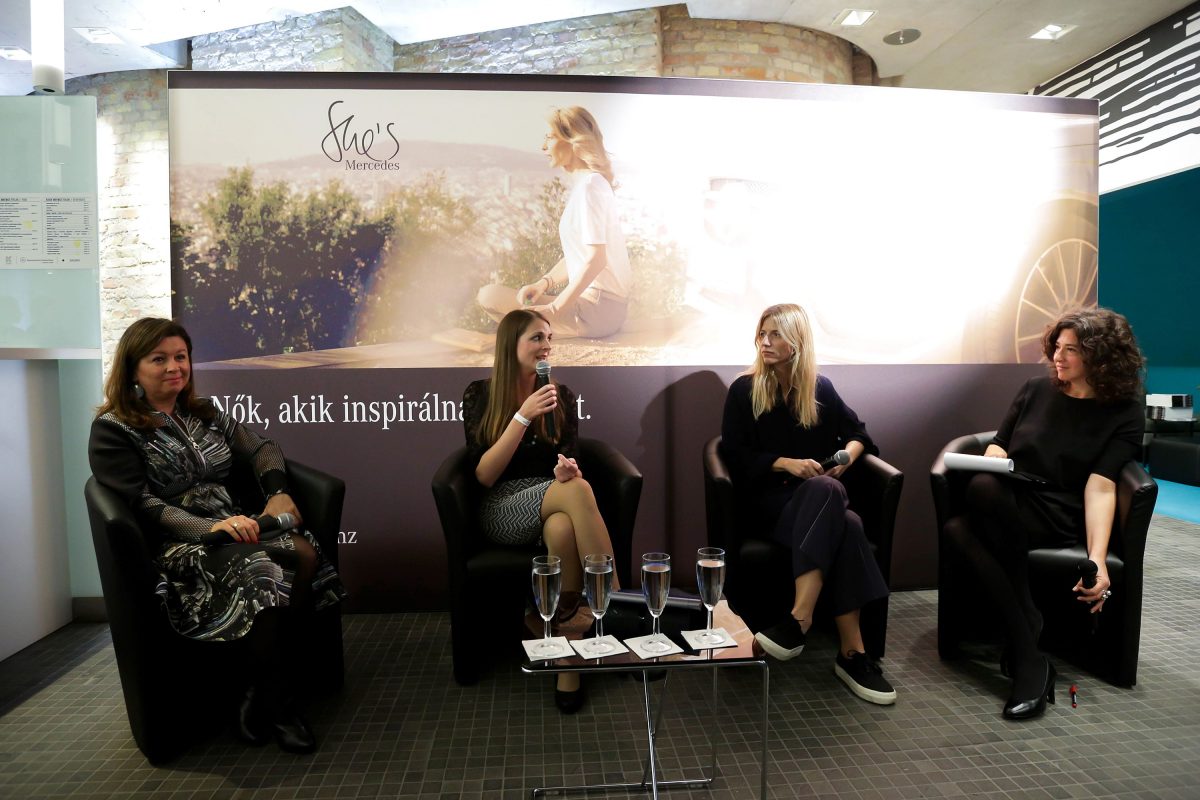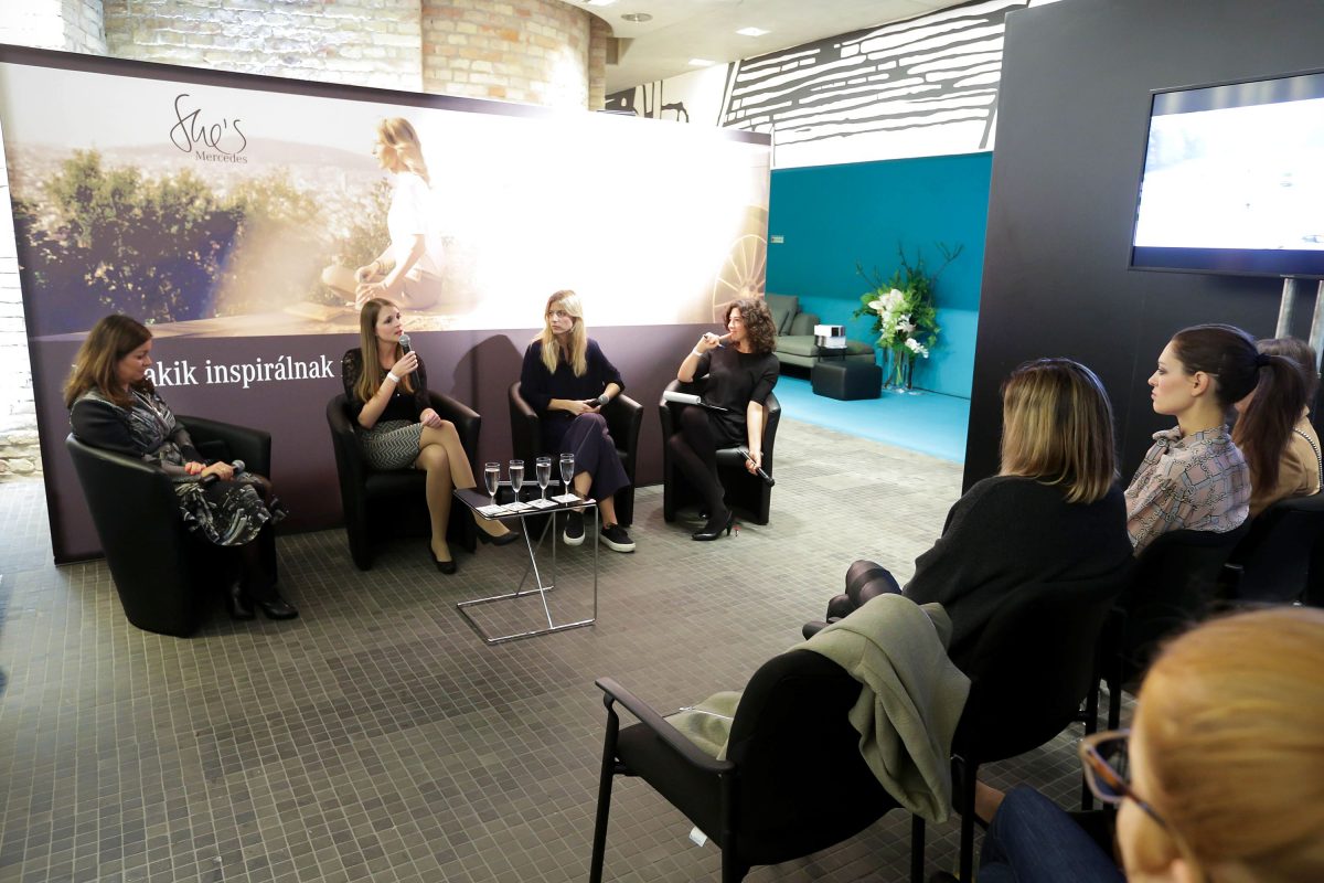 A She’s Mercedes felmérés eredményeit a márka a Mercedes-Benz Fashion Weeken ismertette a meghívott vendégek számára. Winkler Nóra az Áeron márka divattervezőjével és tulajdonosával, Áron Eszterrel, valamint Pál Eszter trendkutatóval és Sztipichné Kozári Edinával, a Mercedes-Benz Hungária Kft. marketing és PR vezetőjével beszélgetett a kutatás érdekességeiről, valamint az előadók személyes tapasztalatairól és vezetéssel kapcsolatos élményeiről.