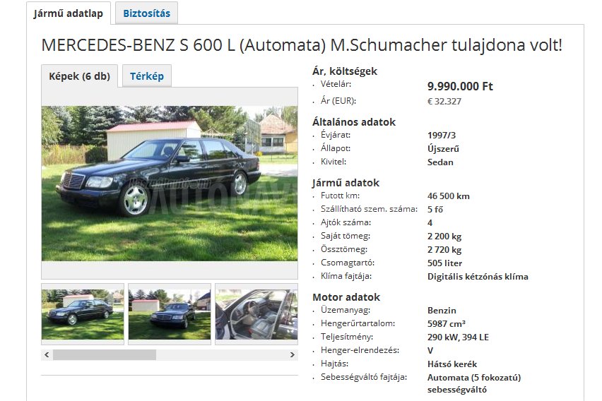 Vajon valóban Schumacher autóját hirdetik a Használtautón?