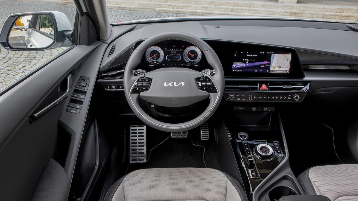 Az EV6 és a Sportage által már megmutatott kétkijelzős műszerfalat hozza - józanabb, de elegendő méretben