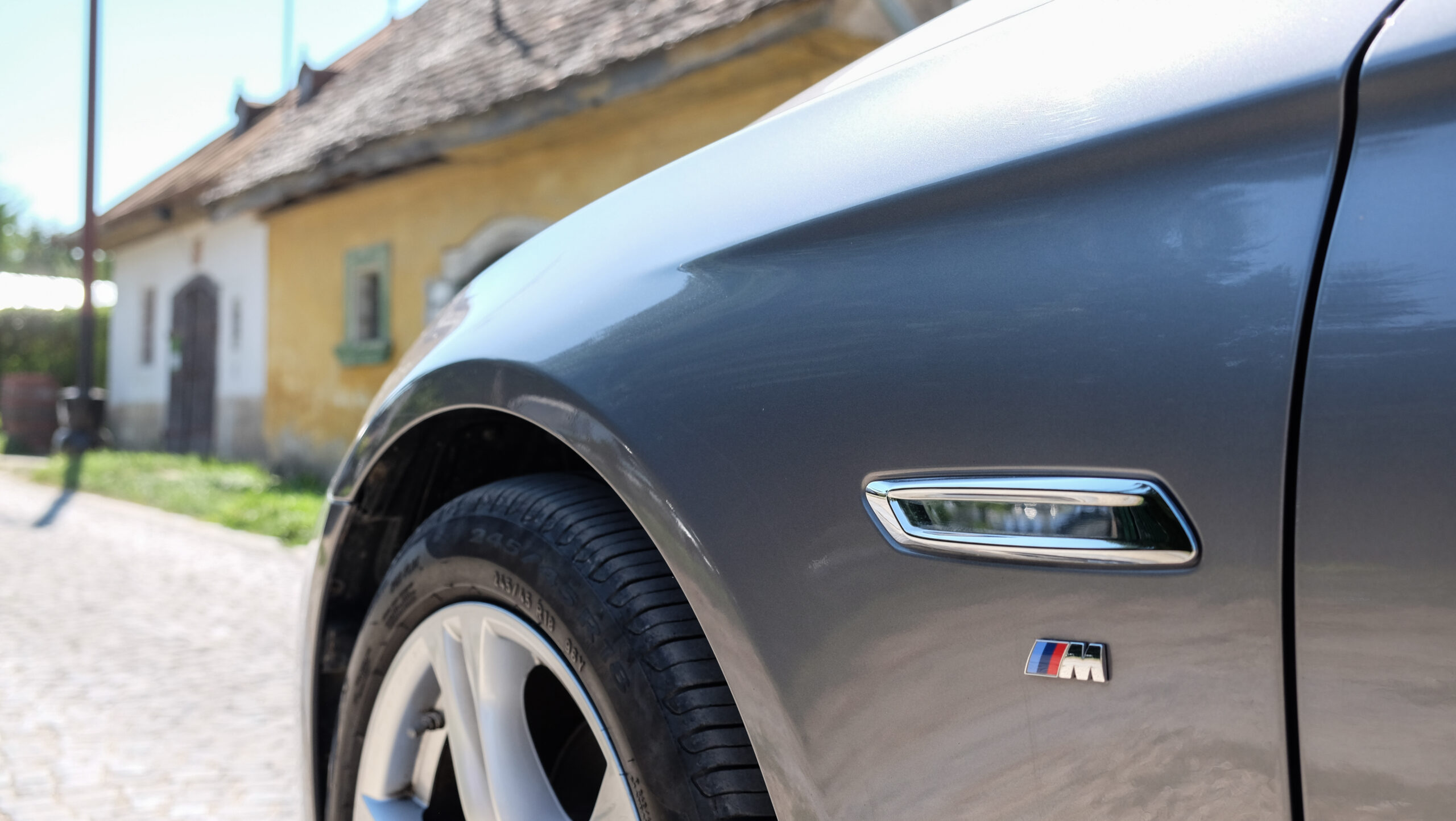 Kevésbé közvetlen a kormányzás, még így is ritka kellemes csillapítású a futómű és nagyon kevés zaj tör be az utastérbe, mégis jóleső közvetlenség járja át az egészet. A mindennapokban ennél több talán nem is kellene, pláne egy ilyen 5-ösben, amitől azt várja az ember, hogy kényelmes és csöndes legyen, nem pedig egy sportautó. Ebben a formában tökéletesen működik is, annyi fűszerrel, amit a kézi váltó ad hozzá.A sportkormány hajlandó fényesedni, itt még csak kezd, a belső nagyon egyben van, új autó érzésünk van benne ülve