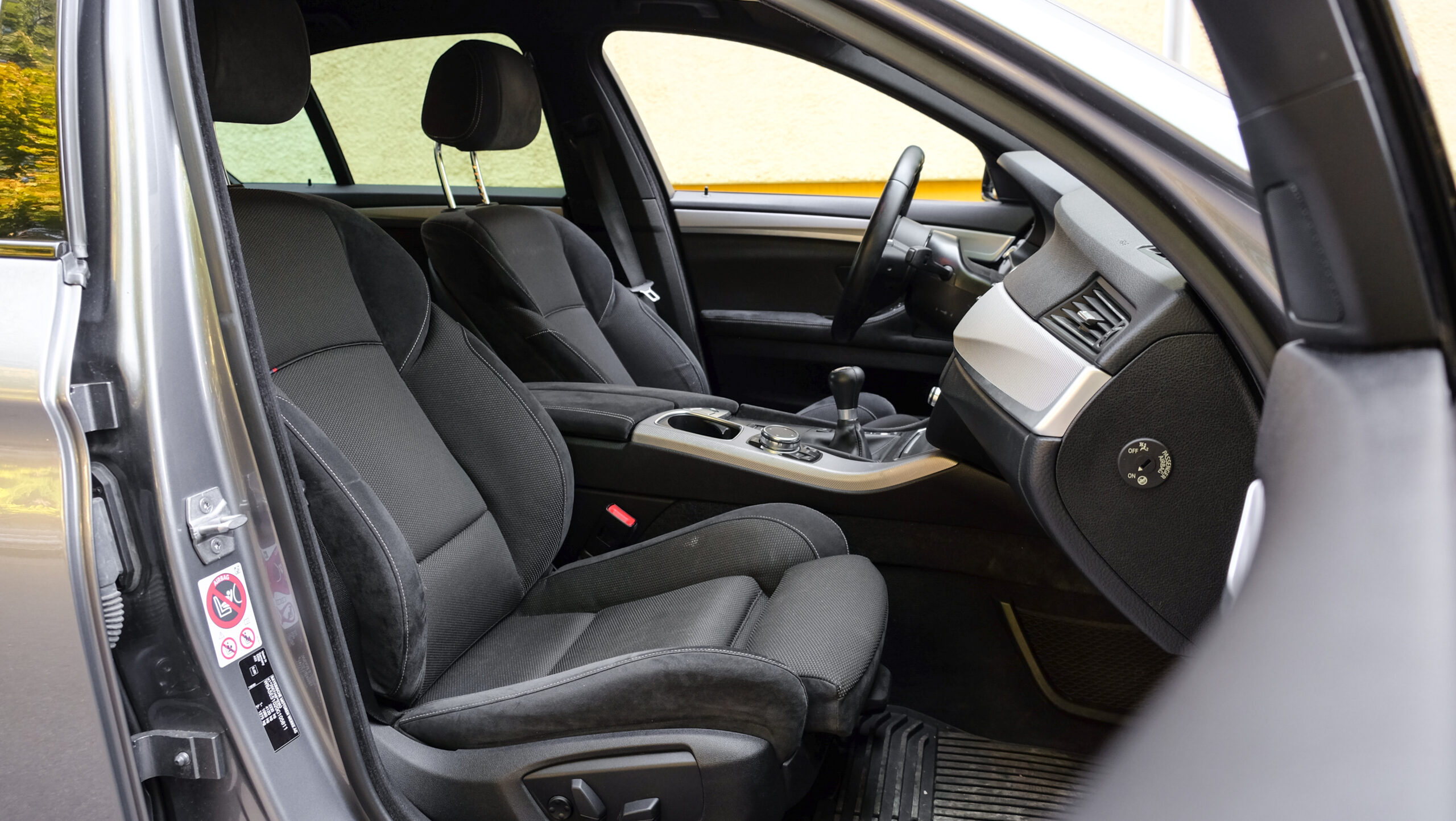 Kényelmes, tartásuk viszont feszes is lehet. Kopástól a vaskos oldaltámaszon beszélhetünk a vezetőülés esetén, itt is csak a szövetbetétes rész kezdett el bolyhosodni.Klasszikusan BMW-s arányú limuzin, sportos vonásokat mutat, de az F10 még így is inkább kényelmes utazóautó