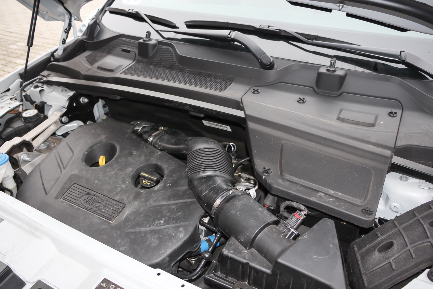 Műanyagban van elrejtve, a felirat szerint Land Rover, de tudjuk, hogy ez egy Ford motor. Itt jobban muzsikál, mint az új Mondeóban