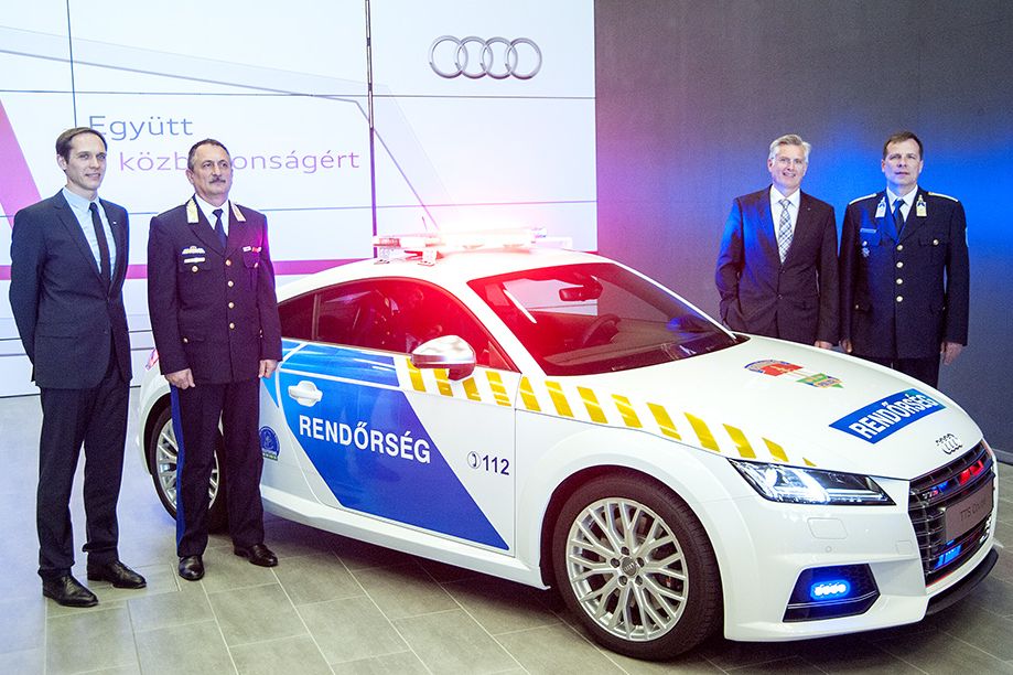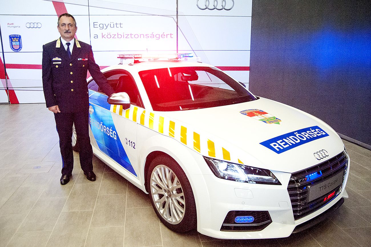 Az Audi TT-k a hazai zsernyák verdák legmenőbbjei. Ezt a 310 lóerős TTS-t a Győr-Moson-Sopron Megyei Rendőr-főkapitányság használja. Nem fánkot szállít, hanem ha kell, az M1-esen is utolér, szinte bármit