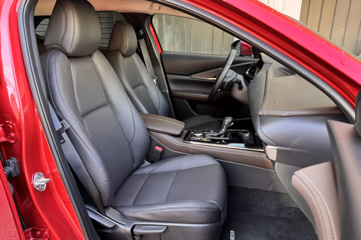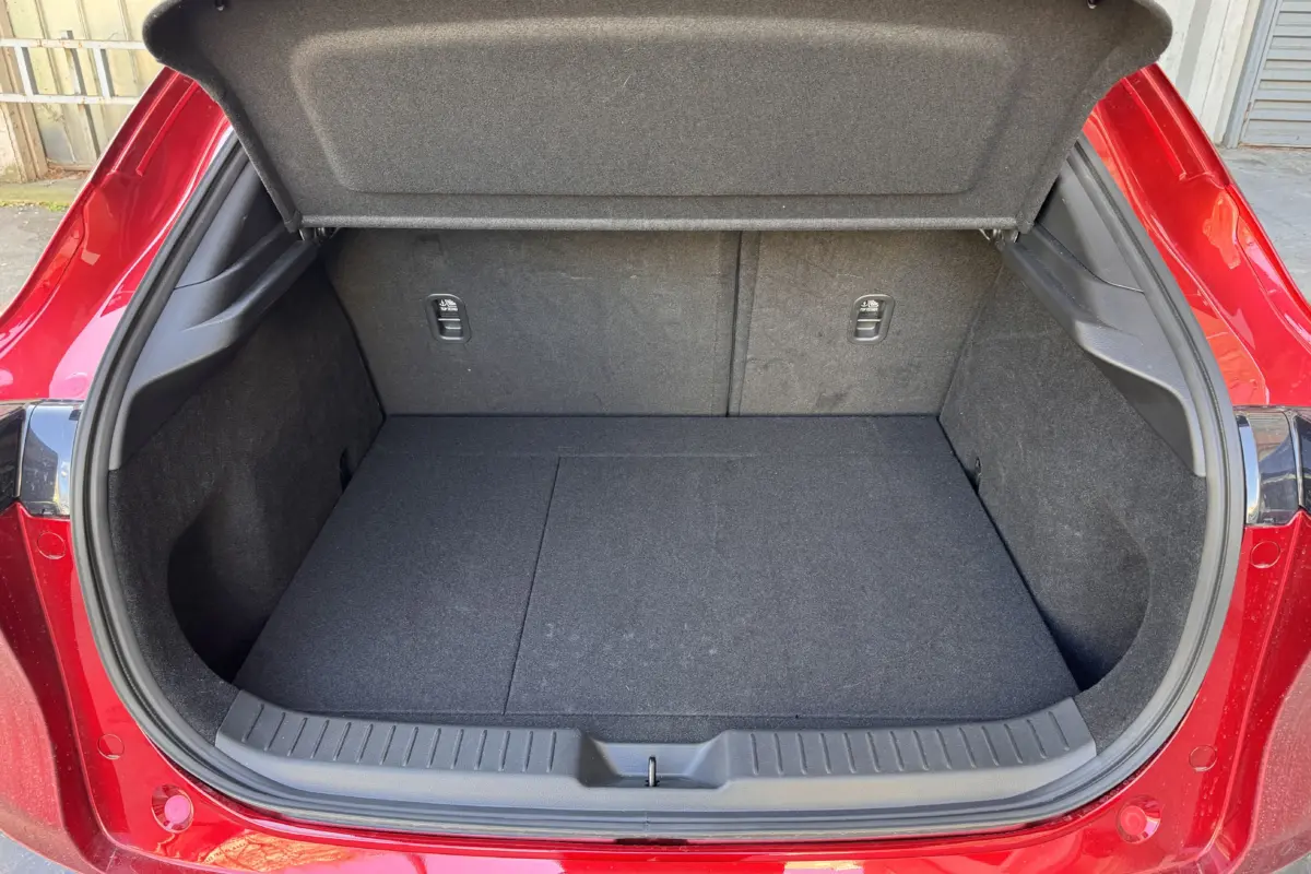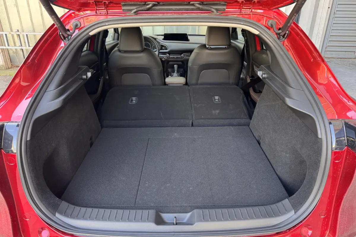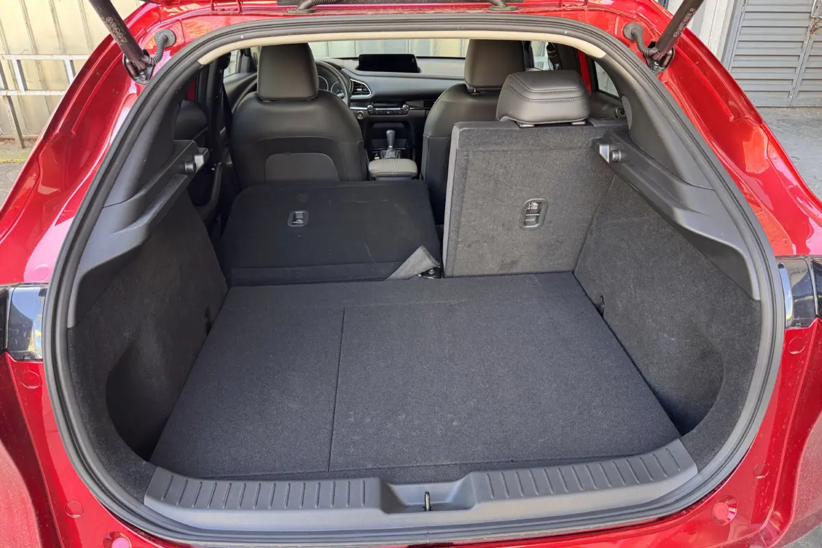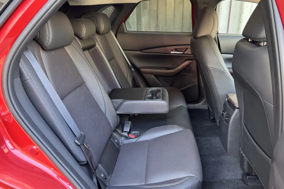Mielőtt erre rátérnék egy gyors ismétlés. A CX-30 egy alsó-középkategóriás crossover, vagy, ha tetszik SUV, szóval egy olyan személyautó, ami terepjárós stílusjegyekkel bír. Nevezhetjük megemelt Mazda3-asnak is. Majdnem 4,4 méter hosszú, másfél méter magas és 1,8 méter széles, miközben a tengelytávolsága 2,65 méter. Szóval klasszikus kompakt, ennek megfelelő méretű utastérrel. Elöl bőséges a helykínálat, hátul pedig elférnek felnőttek is, de inkább gyerekek számára optimális. Mindez a 422 literes csomagtérrel itthon ideális családi autónak számít.