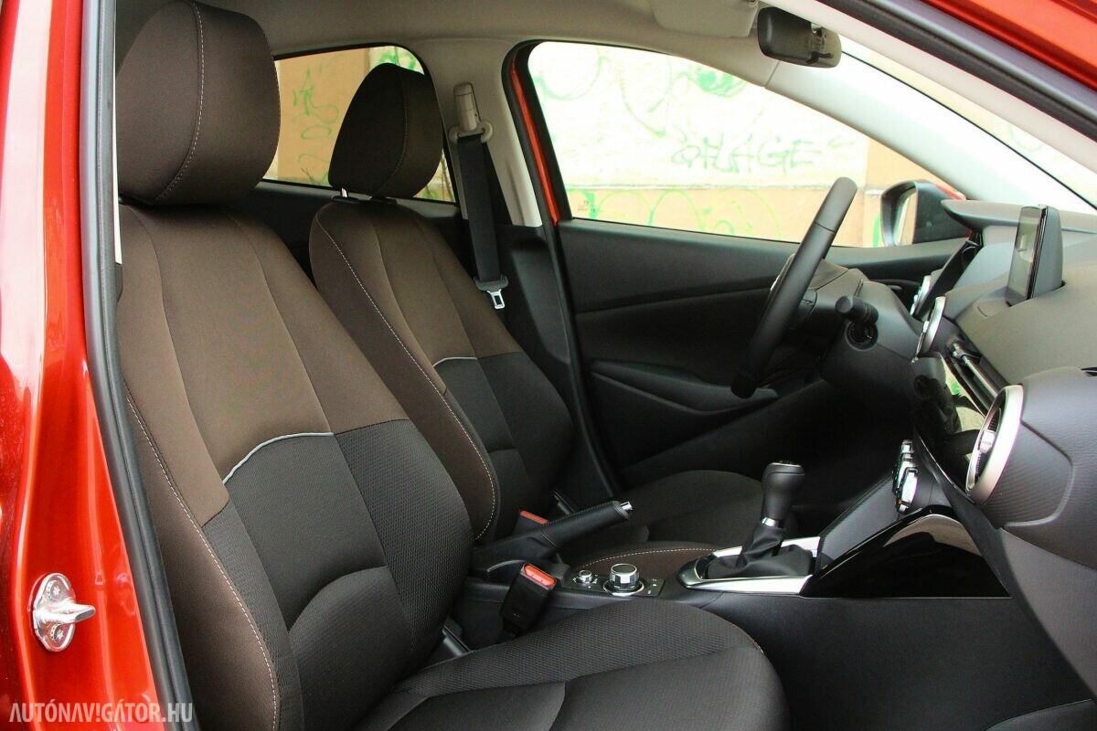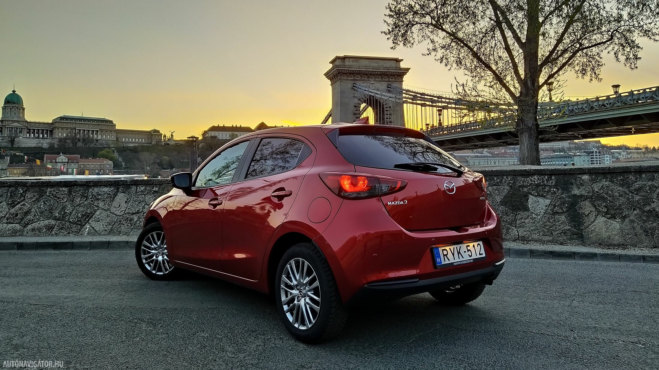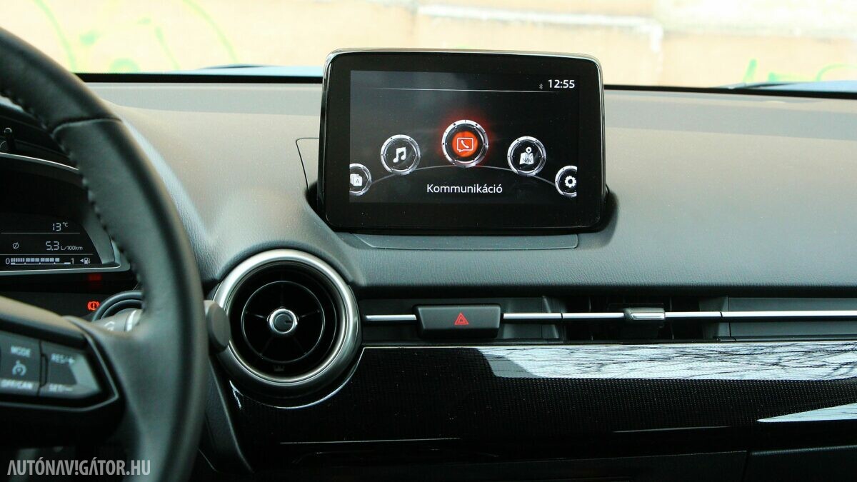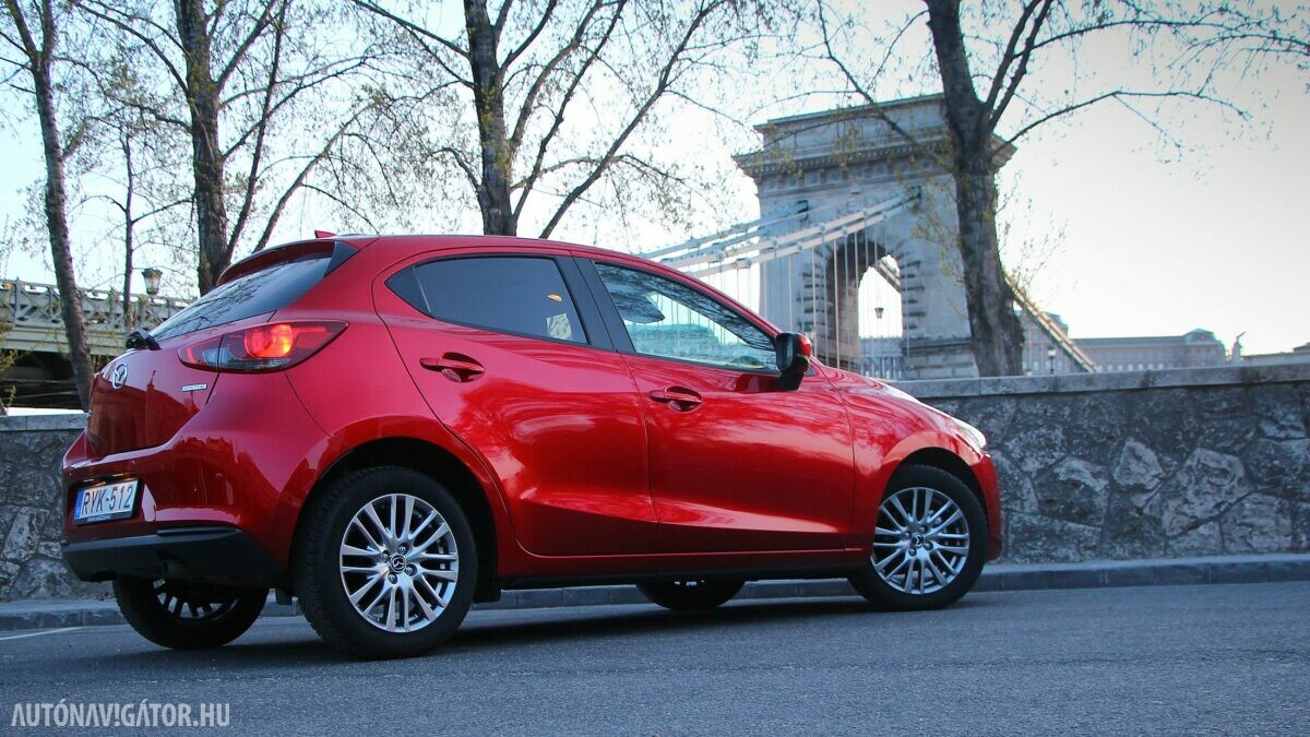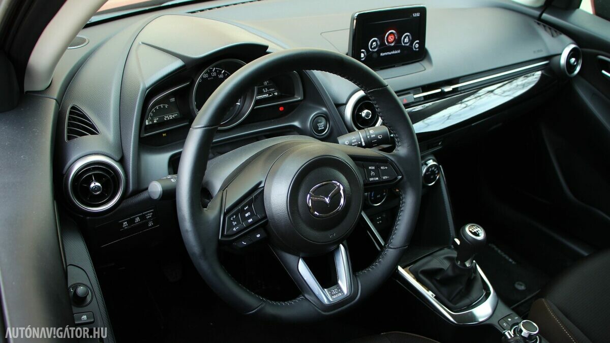 Ha már az élmény szóba jött, tényleg muszáj megdicsérni a futóművet, illetve a kormányt, mert maximálisan sportos. Előbbi persze emiatt feszes, ami göröngyös útfelületen a komfort ellen dolgozik, de kárpótol érte a veszett jó kanyarstabilitás és a rendkívül közvetlen kormány, ami pont elegendő visszajelzést ad. Egyszóval a sportos vérmérsékletűeknek ajánlom a kis Mazdát, ők fogják igazán értékelni azt, amit nyújtani tud. Sajnos nem olcsón, mert 5 430 900 forintról indul a Mazda2 ára, míg a Takumi felszereltséggel már 6 040 900 forint. Ebben már 16 colosak a felnik, a manuális klíma helyett automata jár, az első utasok ülésfűtésnek is örülhetnek, a vezető pedig tempomatnak. Továbbá a parkolóradarnak, tolatókamerának,holttérfigyelőnek, sávelhagyásra figyelmeztető rendszernek és a visszagurulásgátlónak is. A tesztautóban még a navigációs rendszer növelte tovább az árat, így a végösszeg 6 443 450 forintnál állt meg az esetében, ami egy kisautó árcéduláján merésznek hangzik, ám a Mazda bevallottan a prémiumszegmens irányából szeretne vásárlókat halászni a kisautójához.