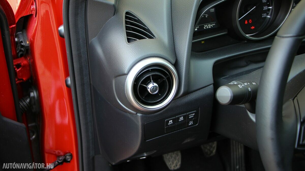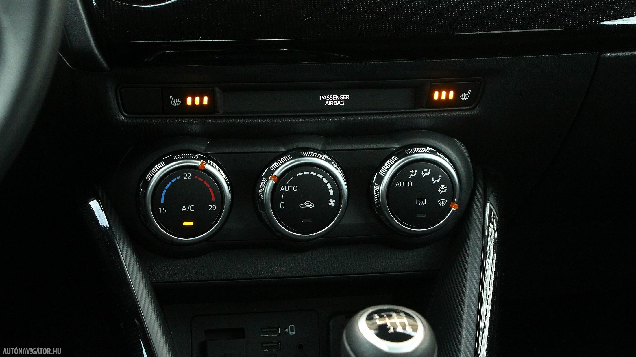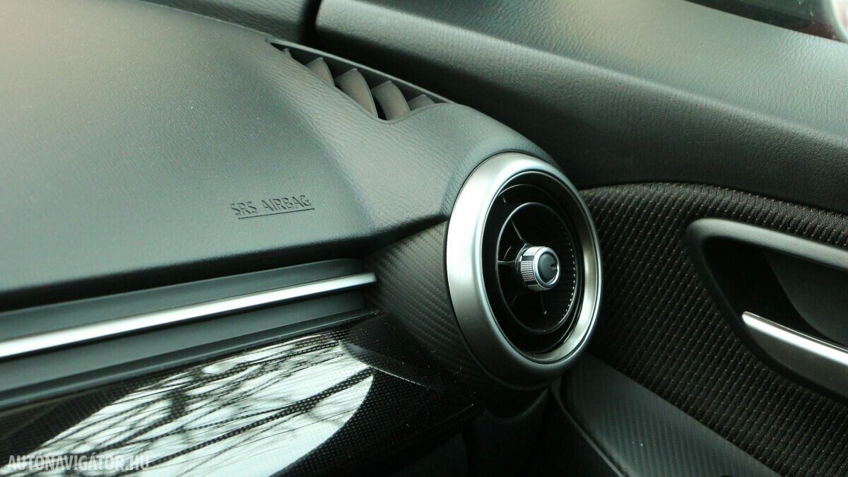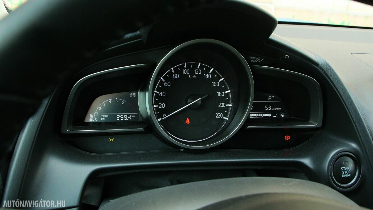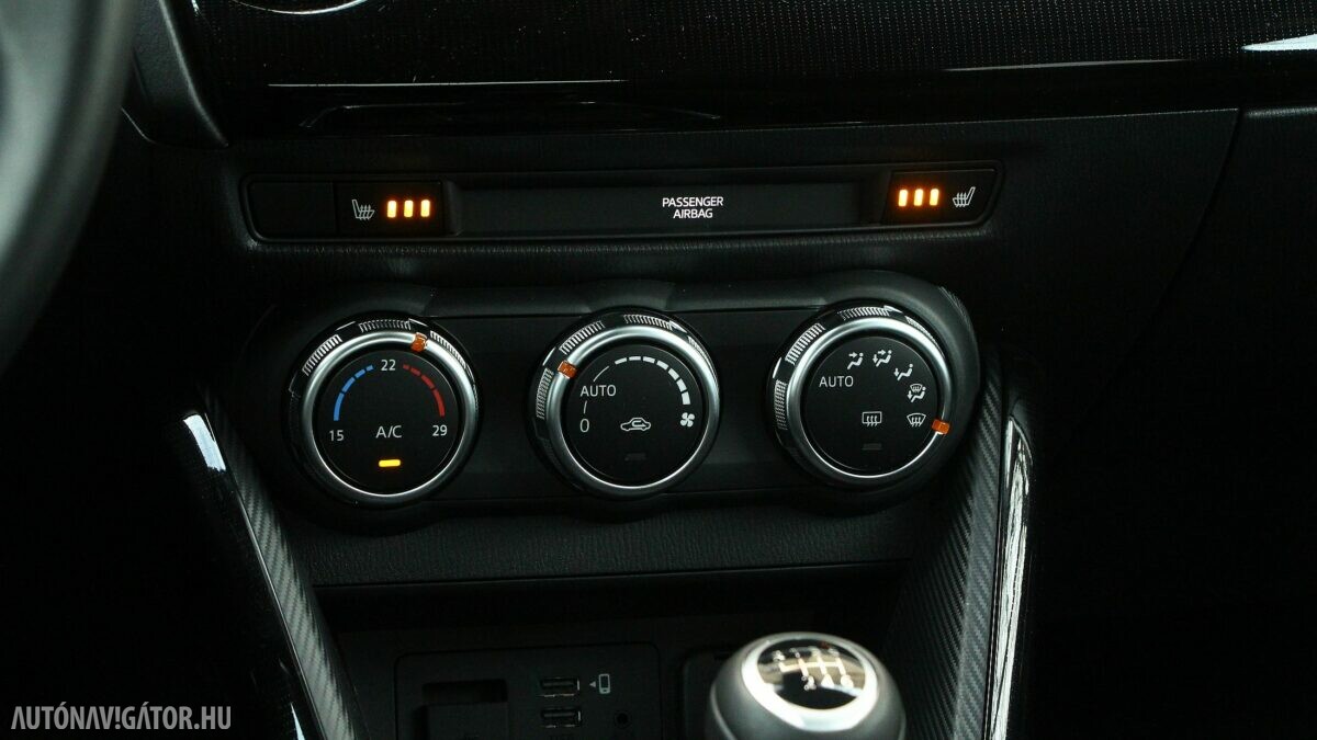 Ha már az élmény szóba jött, tényleg muszáj megdicsérni a futóművet, illetve a kormányt, mert maximálisan sportos. Előbbi persze emiatt feszes, ami göröngyös útfelületen a komfort ellen dolgozik, de kárpótol érte a veszett jó kanyarstabilitás és a rendkívül közvetlen kormány, ami pont elegendő visszajelzést ad. Egyszóval a sportos vérmérsékletűeknek ajánlom a kis Mazdát, ők fogják igazán értékelni azt, amit nyújtani tud. Sajnos nem olcsón, mert 5 430 900 forintról indul a Mazda2 ára, míg a Takumi felszereltséggel már 6 040 900 forint. Ebben már 16 colosak a felnik, a manuális klíma helyett automata jár, az első utasok ülésfűtésnek is örülhetnek, a vezető pedig tempomatnak. Továbbá a parkolóradarnak, tolatókamerának,holttérfigyelőnek, sávelhagyásra figyelmeztető rendszernek és a visszagurulásgátlónak is. A tesztautóban még a navigációs rendszer növelte tovább az árat, így a végösszeg 6 443 450 forintnál állt meg az esetében, ami egy kisautó árcéduláján merésznek hangzik, ám a Mazda bevallottan a prémiumszegmens irányából szeretne vásárlókat halászni a kisautójához.