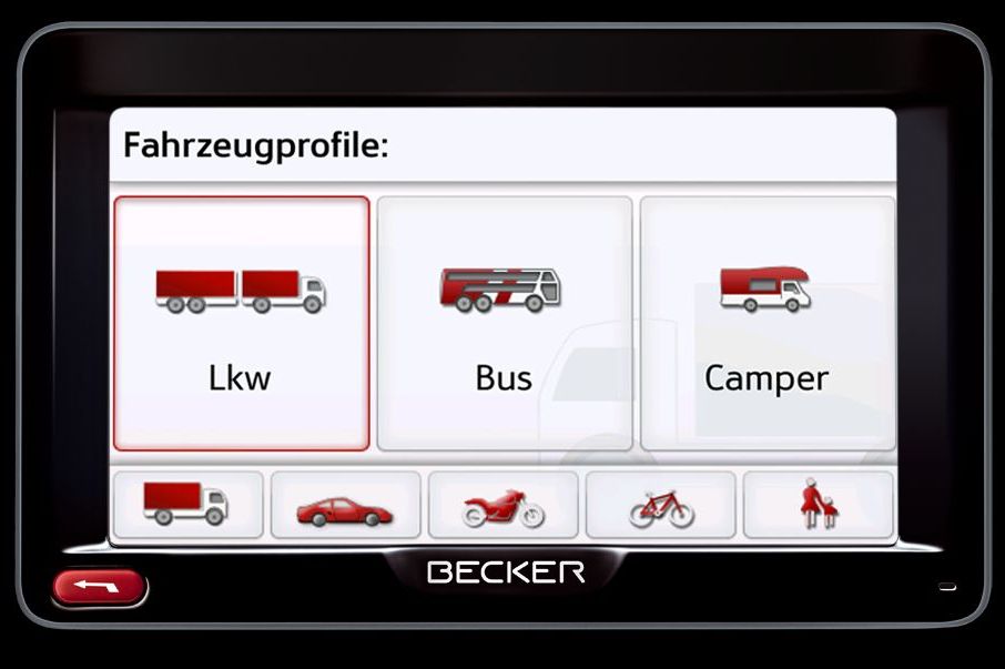 Teherfuvarozók, illetve méretes lakóautóval, lakókocsival közlekedők álom-navigációja lehet a Becker legújabb készüléke, a Transit 50.