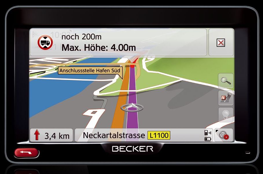 Becker Transit 50 - az új prémiumkészülék naprakész térképe 29 európai országban a tömeg- és méretkorlátozásokat is tudja, és azokat jól láthatóan ki is jelzi