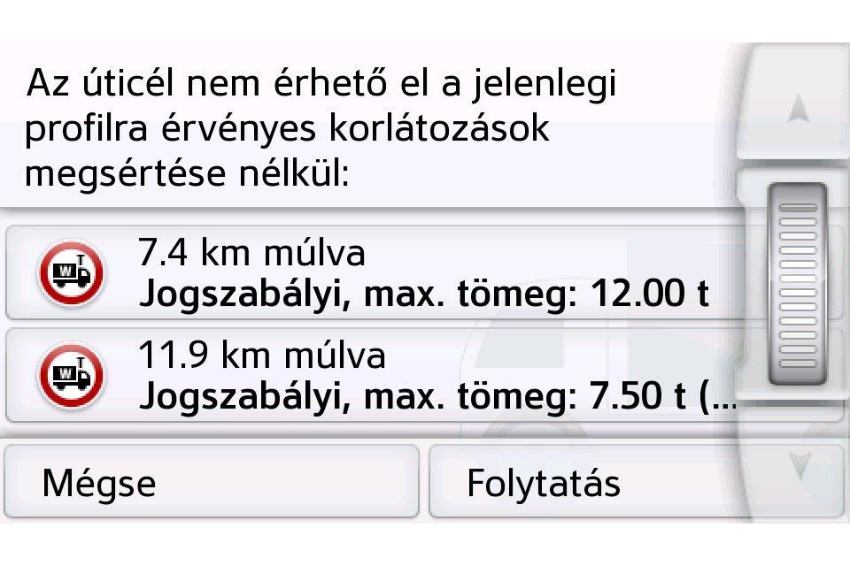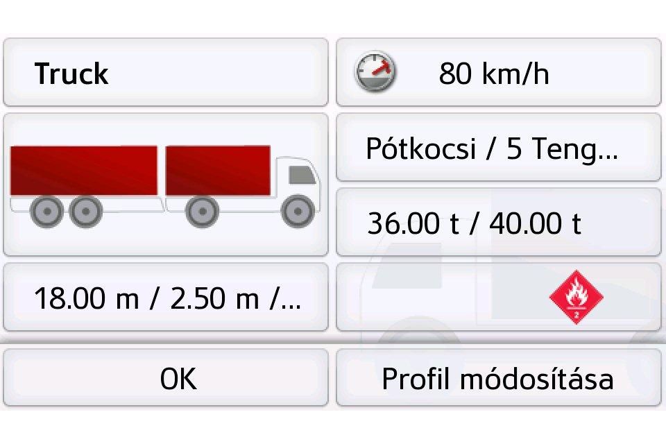 Különféle profilok állíthatók be, így a navigációt több, különböző méretű autóban használva mindig az aktuális legjobb útvonalat adhatja a készülék