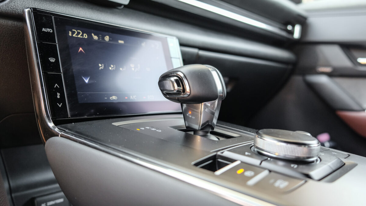 A tesztautónk barna bőrös szövet ülései kimondottan stílusosak, a barnához nagyon jól passzolnak az ezüstös, szürke, újrahasznosított műanyagból készült elemek, mint például az ajtók felső élei, a Modern világos üléseihez még inkább rímel. Jutott bőr a középkonzolra is, ám itt inkább a parafa és a nagyon jól kitalált részletek viszik el a show-t. A parafa alkalmazása a tárolórekeszek aljaként funkcionális (nem zörög és csúszkál benne semmi), és kimondottan jól is néz ki, passzol a minimalista, rusztikus, de azért modern belső dizájnhoz. Nagyon ügyes megoldás a megemelt középkonzol, ami alá is lehet pakolni, átlagos sofőrként jól hozzáférhető a láb mellett is. A váltódoboz mögötti rész is érdekes, a pohártartókra külön-külön lecsukható fedelet terveztek, amik zárva egy újabb pakolófelületet alkotnak, nyitva pedig bezárják a könyöklő alatti rekeszt elölről. Ügyes és ízléses megoldás, ahogy a magasra emelt multimédia kezelőszerv is, ezen a téren nincs újdonság, már ismerjük, ahogy a 8,8 colos, alapáron járó multimédiás rendszert is. Nagy újdonság viszont a digitális klímapanel, amit érdemes tanulmányozni előre, hogy tudjuk, merre nyúljunk menet közben. Bár általa kicsit modernebb a kép, de mindenképp igaz, hogy egy analóg panelt egyszerűbb kezelni. Nagyon jó a vezetési pozíció, remek a kormány fogása és a kilátás is, maga a kormányzás már kevésbé passzol a Mazda sportos jellemzői közé, lényegében semmiféle visszajelzése nincs, amire talán igény sincs sok a kategóriában. [BANNER type="2"]