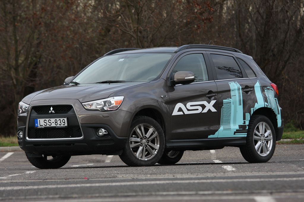 Az ASX tudja is a dolgát. Megjelenésében pontosan idézi nagy testvérét, elhúzott fényszórói gigantikus trapézt fognak közre, a krómkeretes hűtőmaszkot áttöri a lökhárító. Impozáns jelenség tehát a kocsi – igaz, ezzel a trükkel mára a Mitsubishi összes személyautója is megpróbálkozott. Velük ellentétben viszont az ASX nem csak külsőségeiben azonosul az Outlanderrel: tőle származik tudniillik a padlólemeze. Másfél arasznyit levágtak persze elöl-hátul a hosszából, három centivel keskenyebb, tíz centivel alacsonyabb is lett a karosszéria, a tengelytáv viszont nem változott, ami nyurgább, egyszerre dinamikus és stabil hatású külsővel ruházza fel az autót.