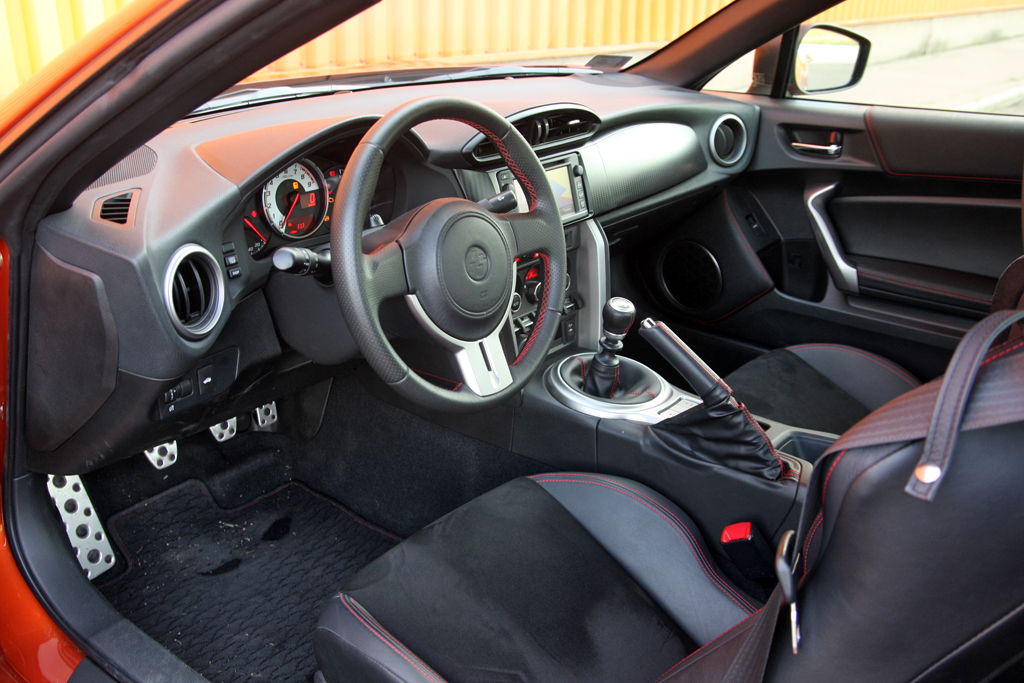 Gergő az előző cikkben és videóban mindent megírt és elmondott a formától az utas- és csomagtéren, a számmisztikán át a kormányzásig és a futóműig, ezért ha megengedik, az ugyanolyan – Sport Leather - felszereltségű tesztautó ismételt részletezésétől ezúttal eltekintenék. És gyorsan leírom a lényeget: a GT86 kézi váltóval az igazi! Pedig jómagam automatapárti vagyok, de akkor is. Miért állítom ezt? Nem azért, mert így könnyebb, s 6 tizeddel fürgébben is gyorsul (0-100 km/h: 7,6 mp), hanem azért, mert zseniális a váltó. Karja extrém rövid utakon jár, a lehető legjobb helyen figyel, s bár subarusan karcosan, mégis pontosan kapcsolgatható. A fokozatkiosztás eltalált, élmény minden egyes gangolás. Leszabályozás előtt piros LED gyullad fel, nos ilyen a GT86-féle váltási segédlet szemben a trenddel, hogy fogyasztáscsökkentésileg mielőbb pakoljunk fel, ne is merjük akár csak a 2000-es értéket átlépni…
