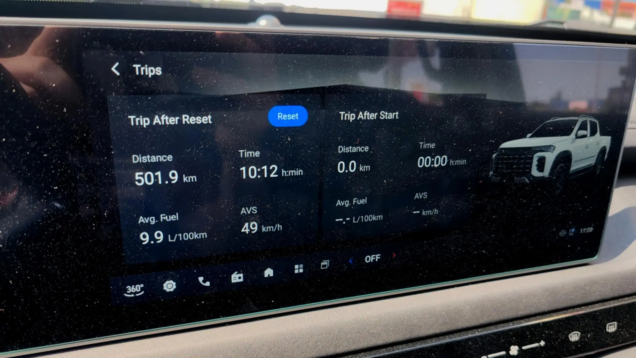 A képernyő szerint 9,9 liter, a visszatankolás szerint 10 liter lett az átlagfogyasztás