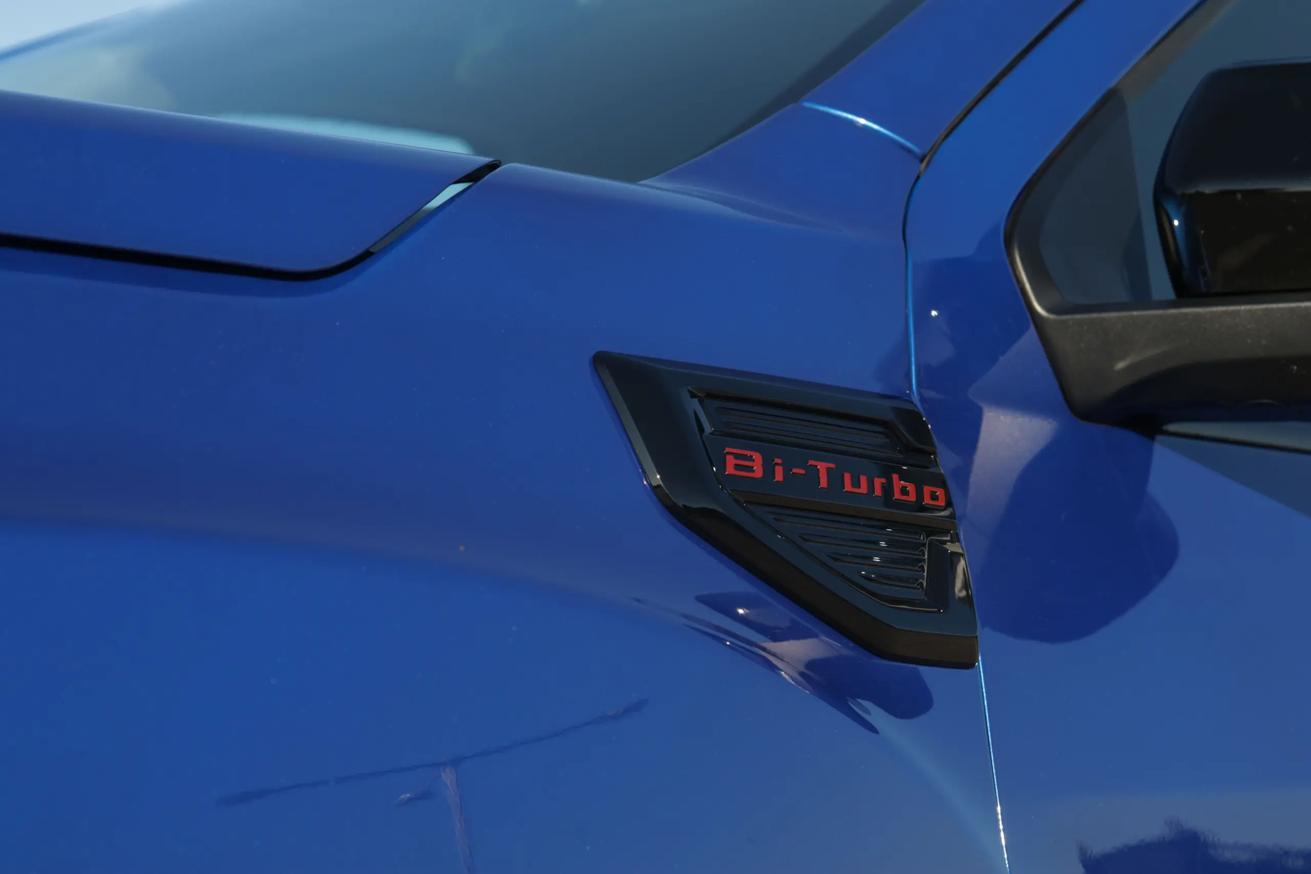 Az első sárvédőkön is büszkén hirdeti a két turbóját