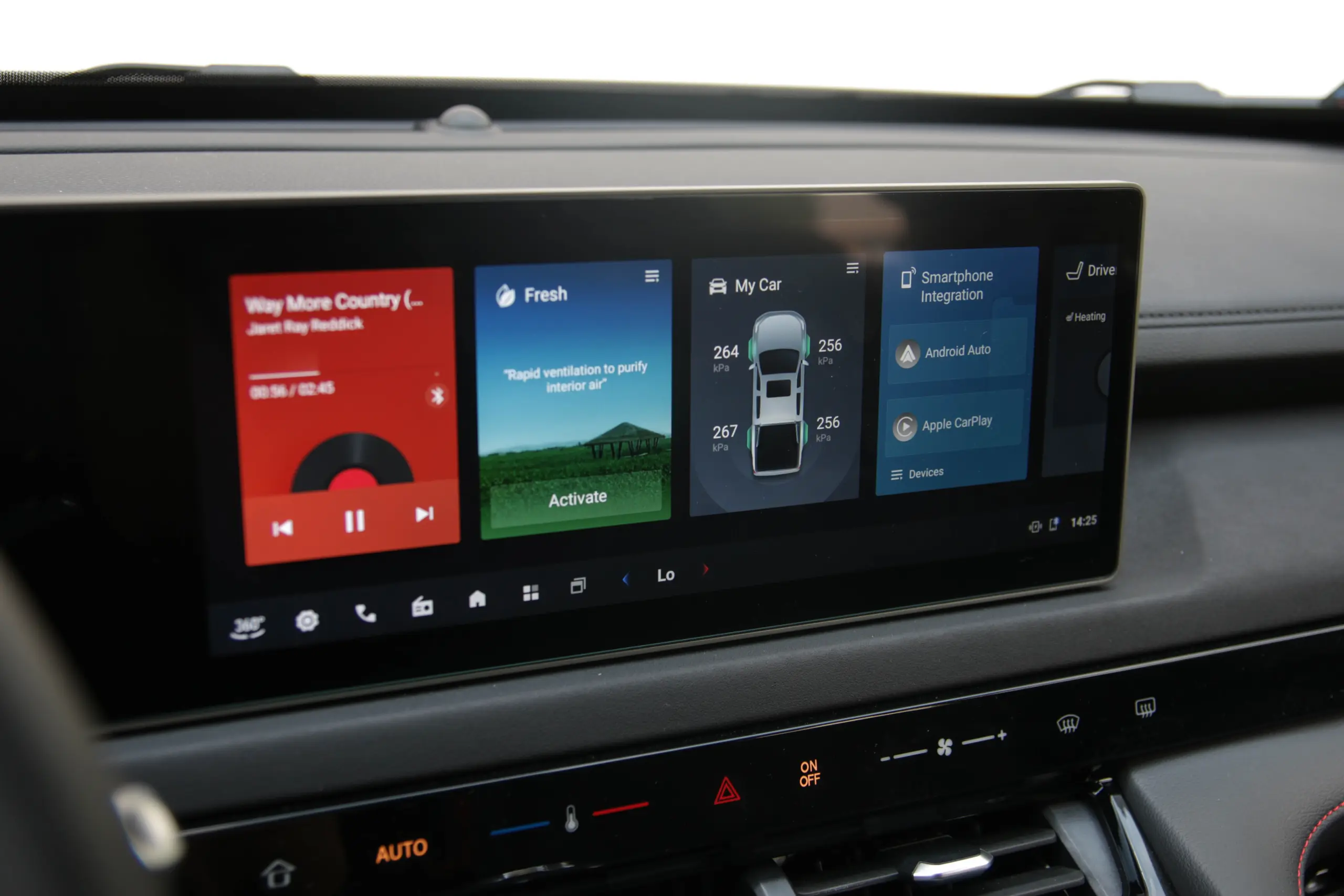 Teljes értékű klímavezérlő nincs, ám az alapokat egy érintősávon lehet állítgatni a főképernyő alatt