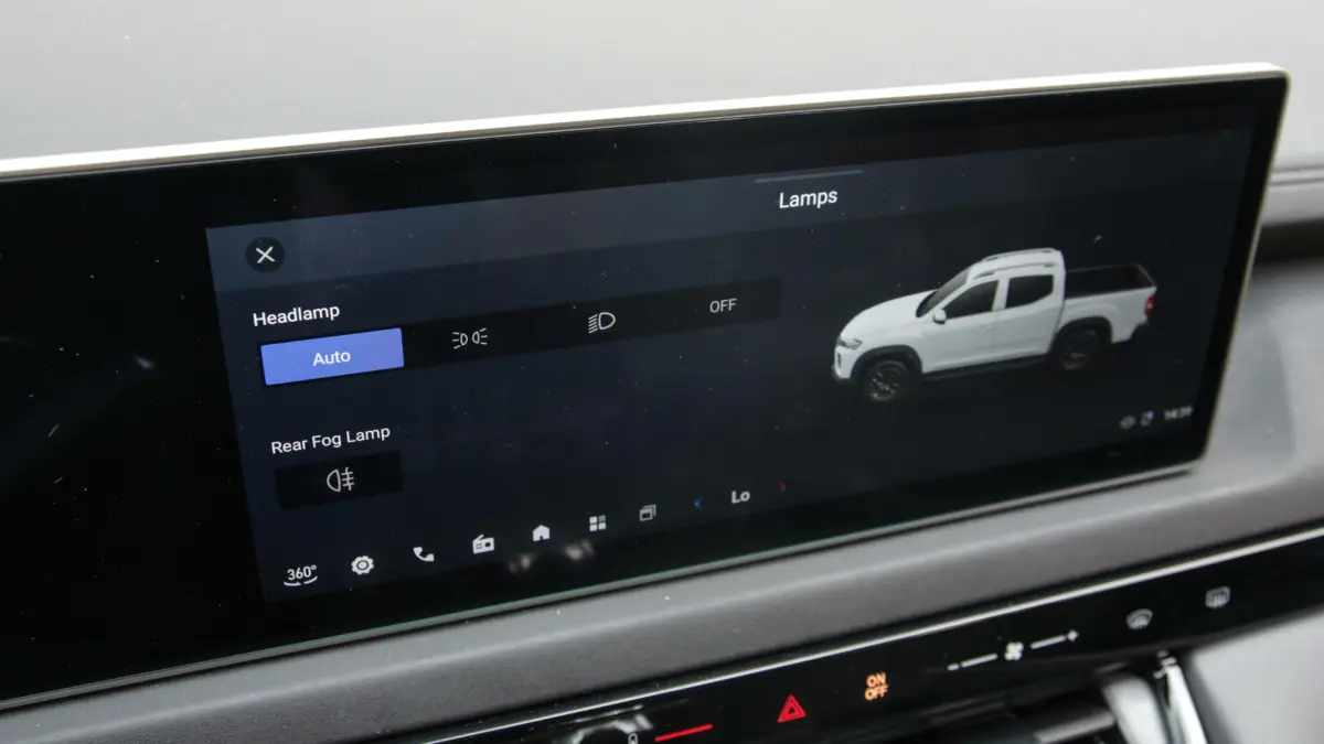 Közel sem teljesített azonban ennyire fényesen az aszfaltozott utakon: még a kategóriatársainál is pattogósabb, valóban teherautós a rugózás, illetve a gázreakciótól, valamint a váltótól is messze áll a személyautós finomság. Félreértés ne essék, együtt lehet élni vele, ám egyértelmű, hogy nem az adót visszaigénylő cégvezetők luxus-haszonjárművének, illetve nem is játékszernek tervezték. A korai példányok ráadásul a kínai haszonjármú-szabályozáshoz igazított, 120 km/órára korlátozott távolságtartó tempomattal érkeztek, ám ezt a gyártó egy szoftverfrissítéssel orvosolni fogja a jövőben. A végsebesség egyébként 170 km/óra, így kényelmesen tud előzni is autópályatempónál. Fogyasztás terén is meglepetést okozott: bár főként üres platóval jártam vele, de 300 kilométernyi autópályán, nagyjából 100 kilométernyi városi forgalomban, illetve további 100 kilométernyi terepen is próbára tettük, így lett kereken 10 liter a fogyasztás a visszatankolás szerint.