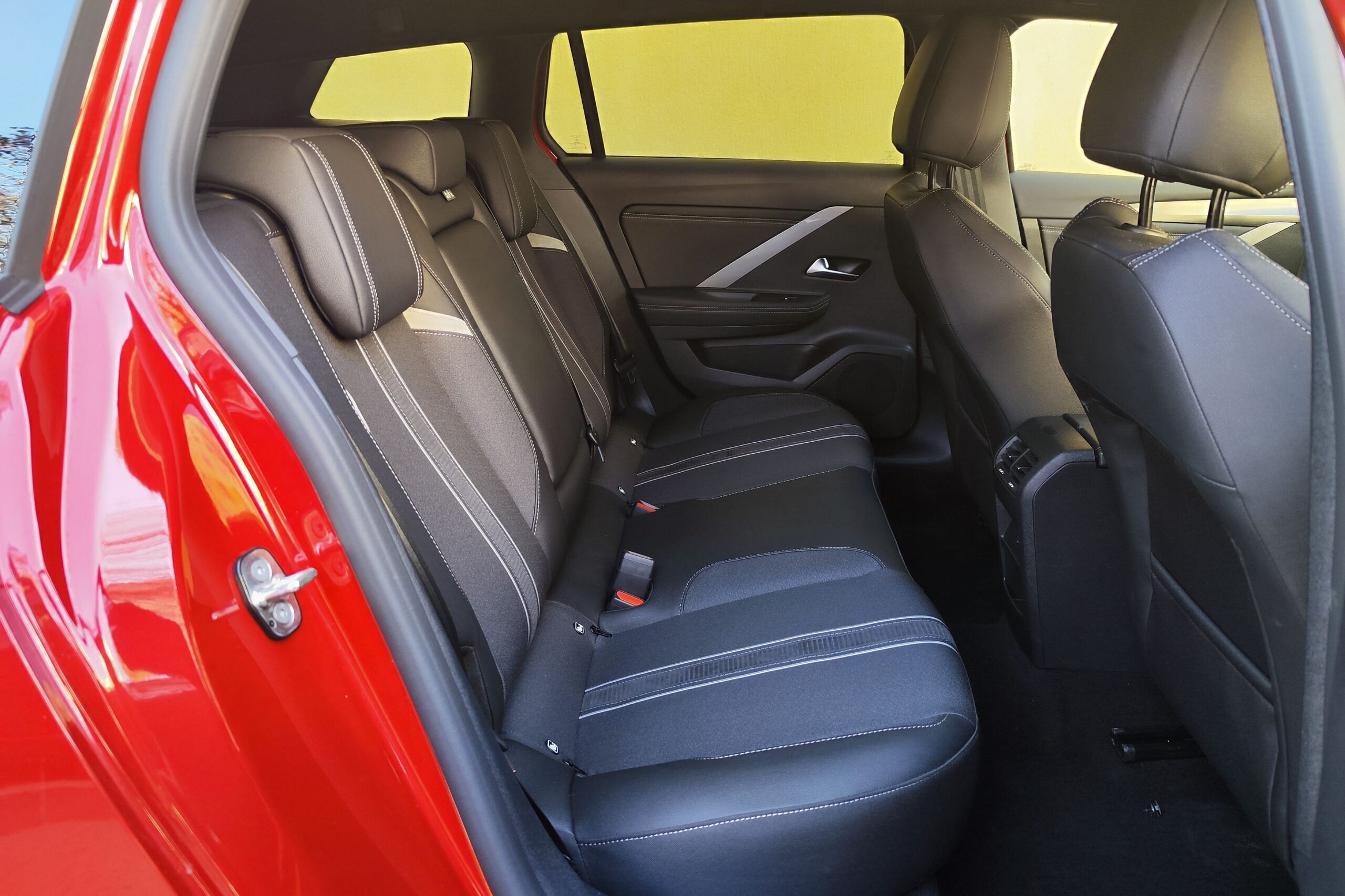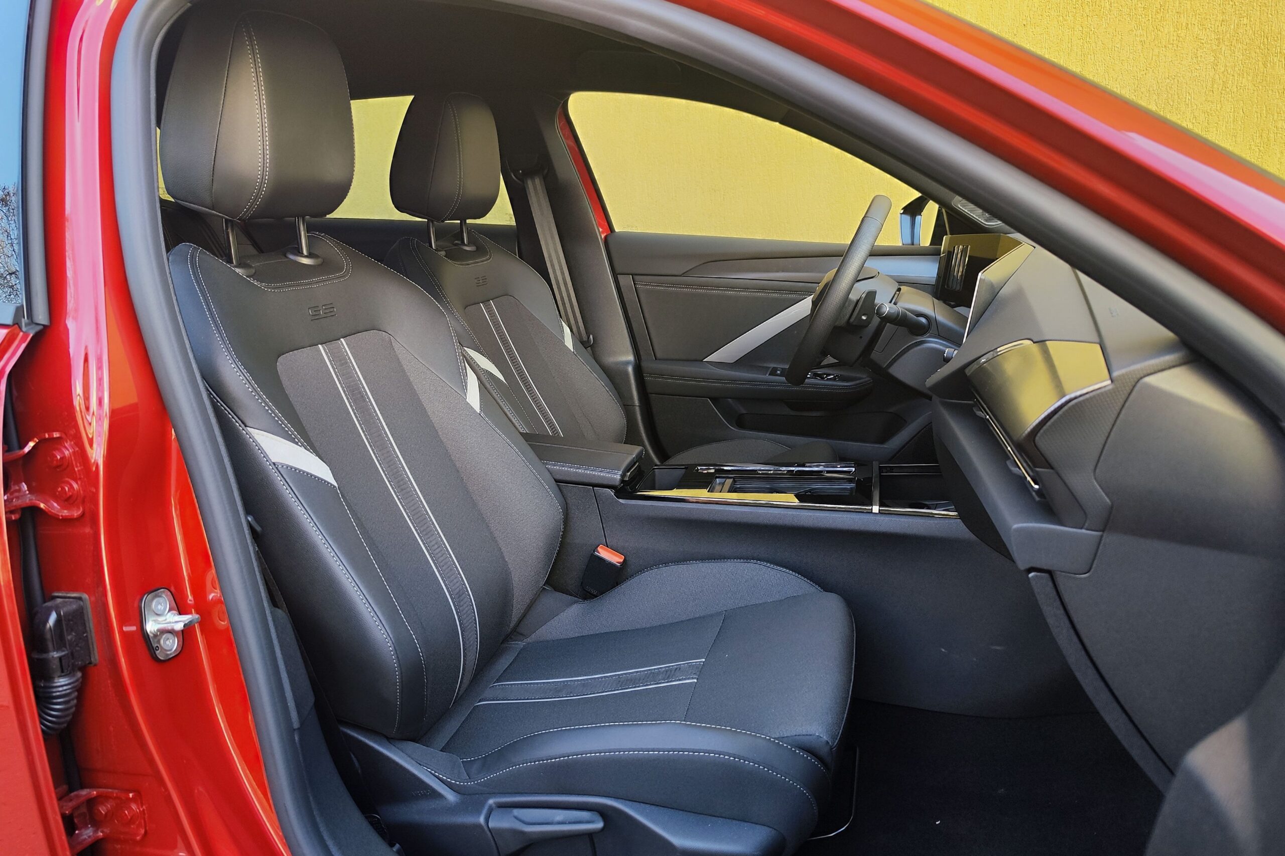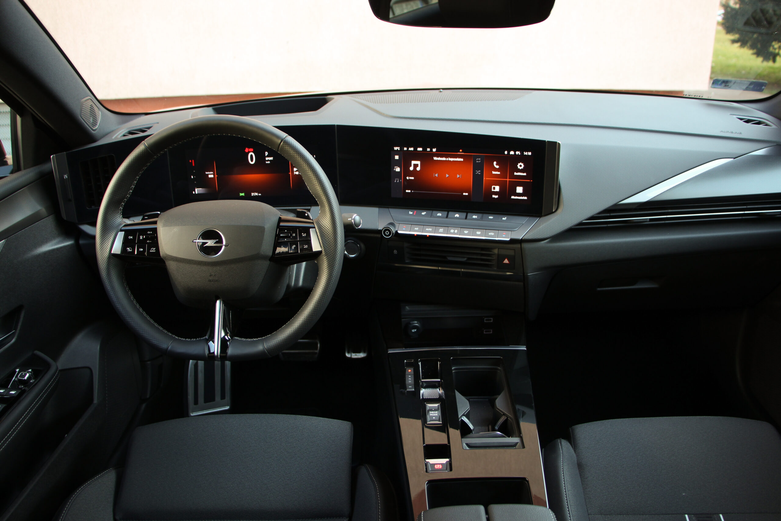 A hatalmas csomagtér mellett a hátsó hely sem piskóta, simán elférnek magas felnőttek is, elöl pedig az AGR minősítésű „fotelekben” lehet helyet foglalni. Ugyanakkor érezni, hogy elsősorban a Peugeot i-Cockpitjéhez szabta a Stellantis az üléspozíciót, de némi matatással azért mindenki a saját testalkatához tudja szabni, és akkor jól látható a digitális műszeregység a kormánykerék mögött, amit kiválthat a HUD. Az infotainment szintén érintőképernyős, de szerencsére maradtak fizikai gombok is, szóval nagyon egyszerű kezelni az Astra fedélzeti rendszereit. Az automatikus sebességváltó kapcsoló fogantyúja sem foglal sok helyet, úgyhogy a kartámasz alatti rekeszen kívül még pohártartó, egy külön tárolózseb és a vezeték nélküli telefontöltőnek is jutott külön zseb.